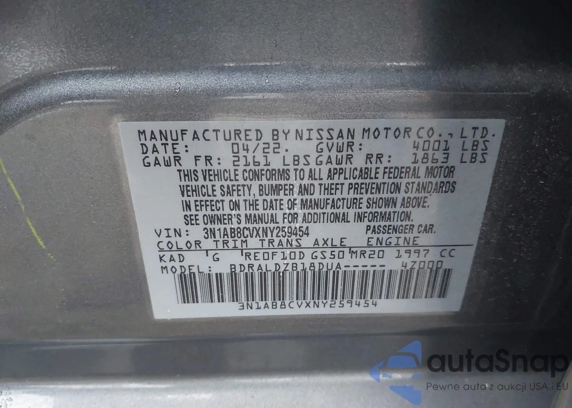 • VIN 3N1AB8CVXNY259454