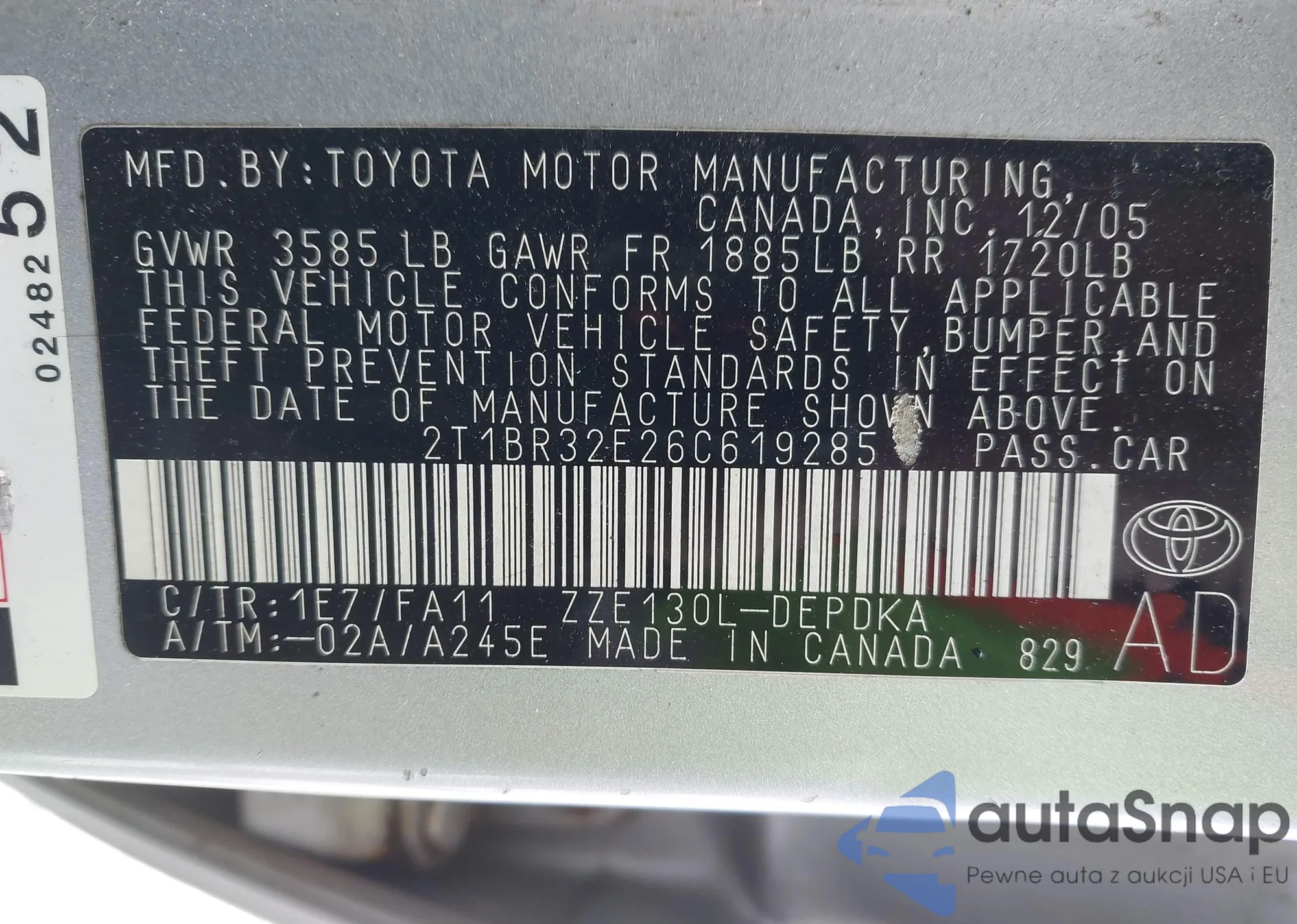 • VIN 2T1BR32E26C619285