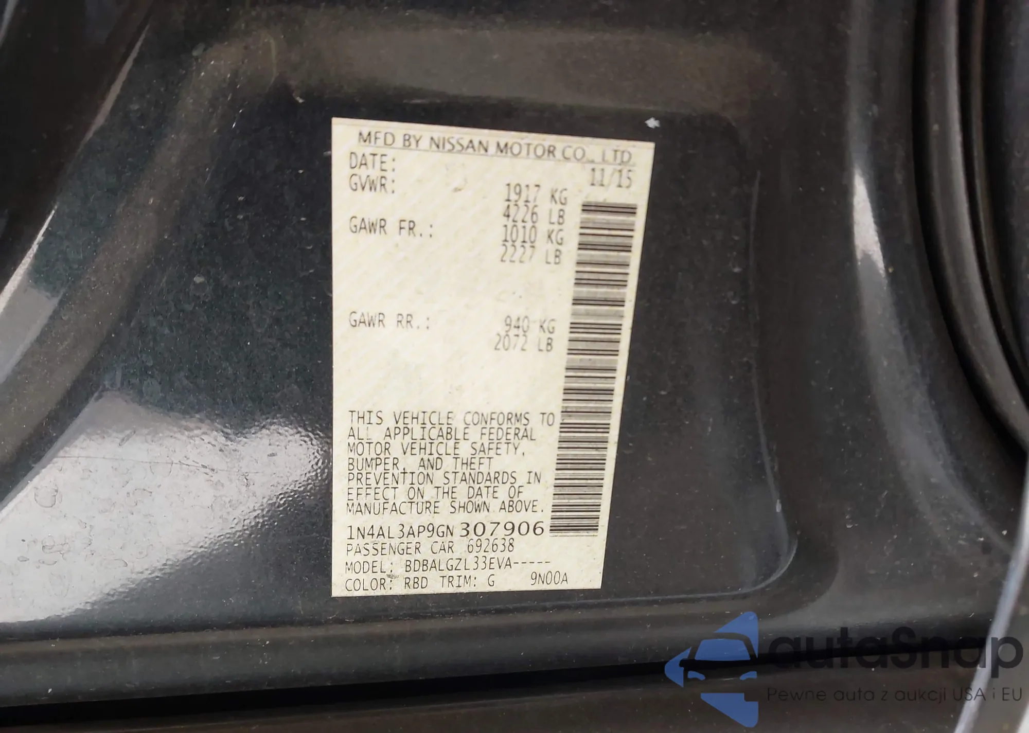 LOT: 43711696 VIN: 1HGCP3F8XBA023095