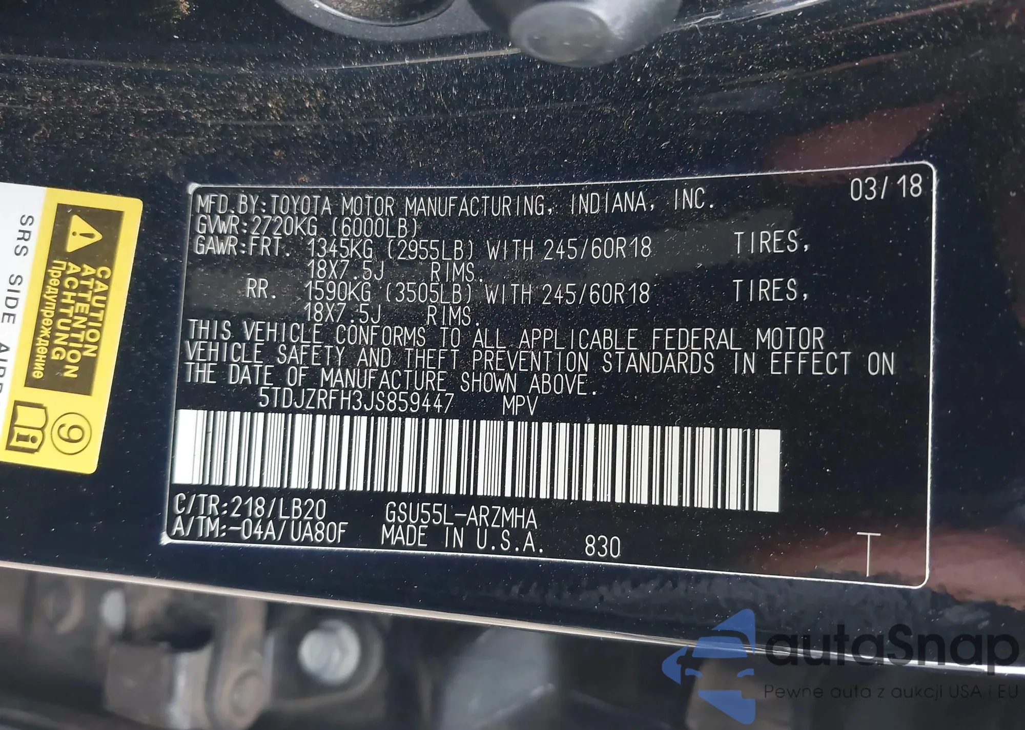 LOT: 44022964 VIN: 5TDJZRFH3JS859447