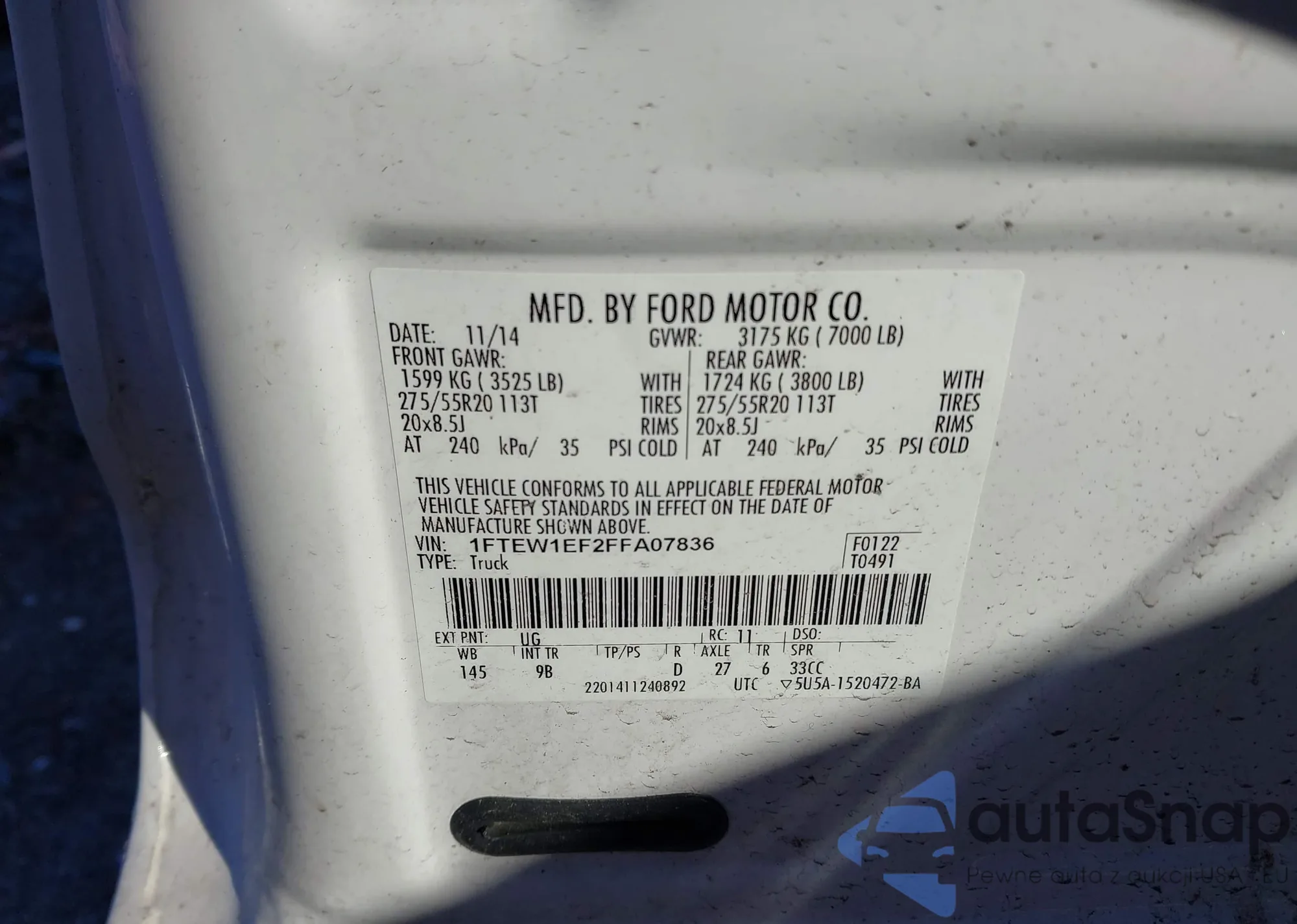 • VIN 1FTEW1EF2FFA07836