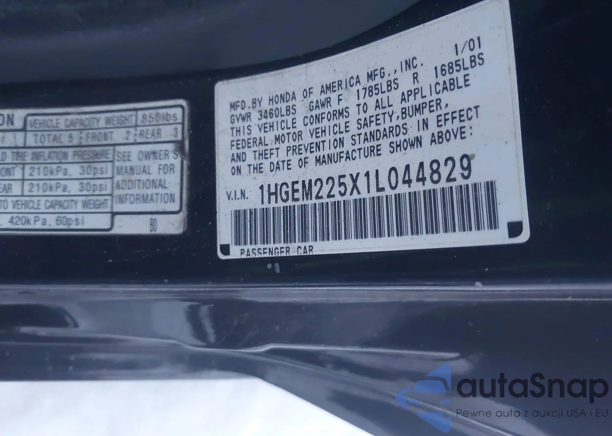 • VIN 5J6RW2H52KL006718