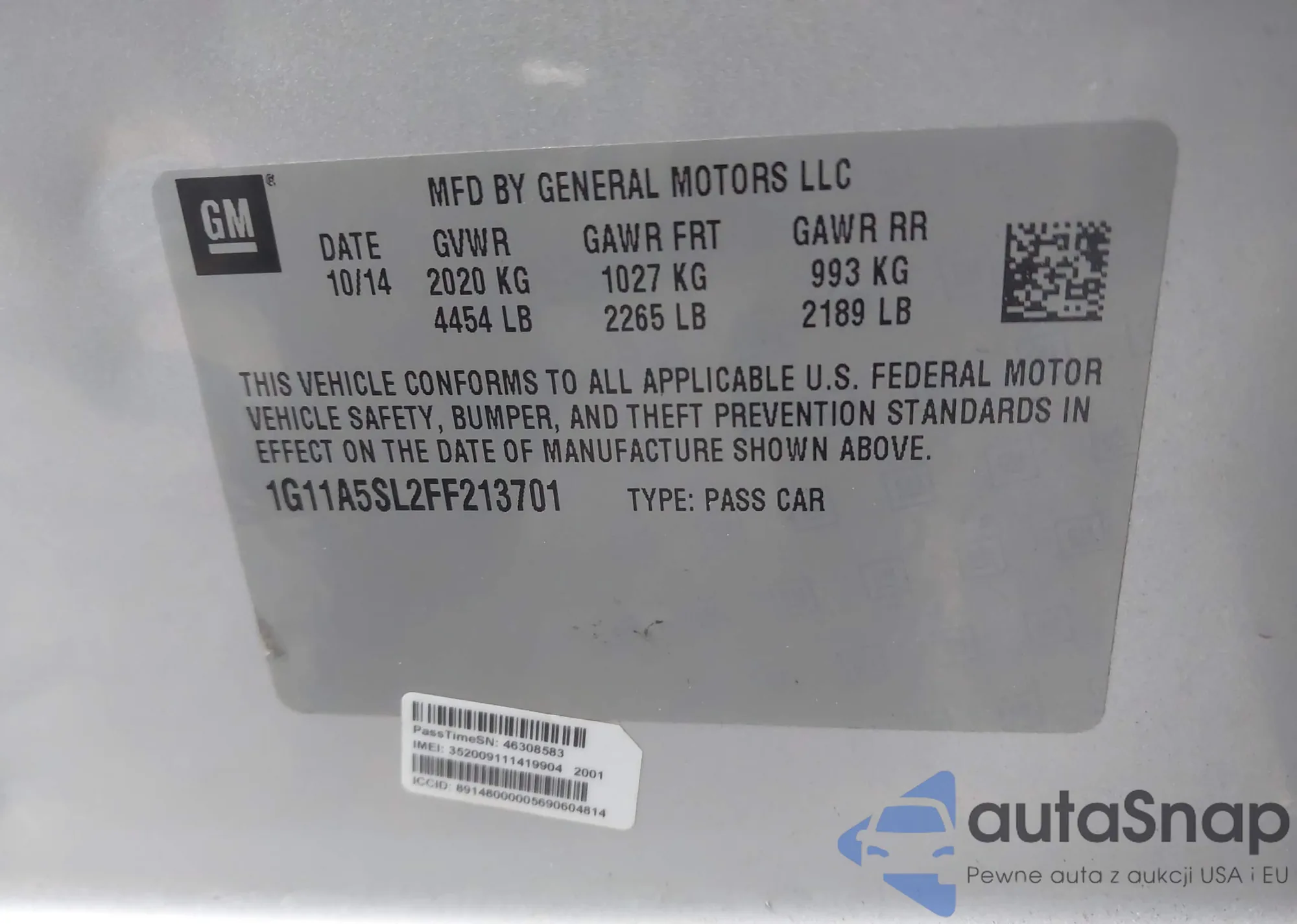 LOT: 43861465 VIN: 1G11A5SL2FF213701