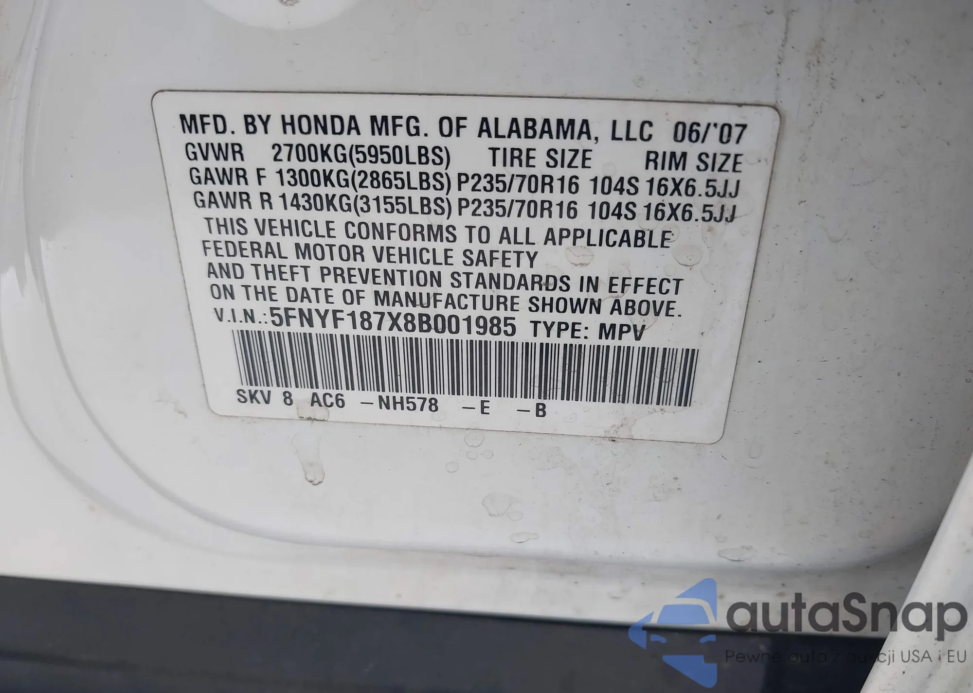 • VIN 7FARS5H80SE019665