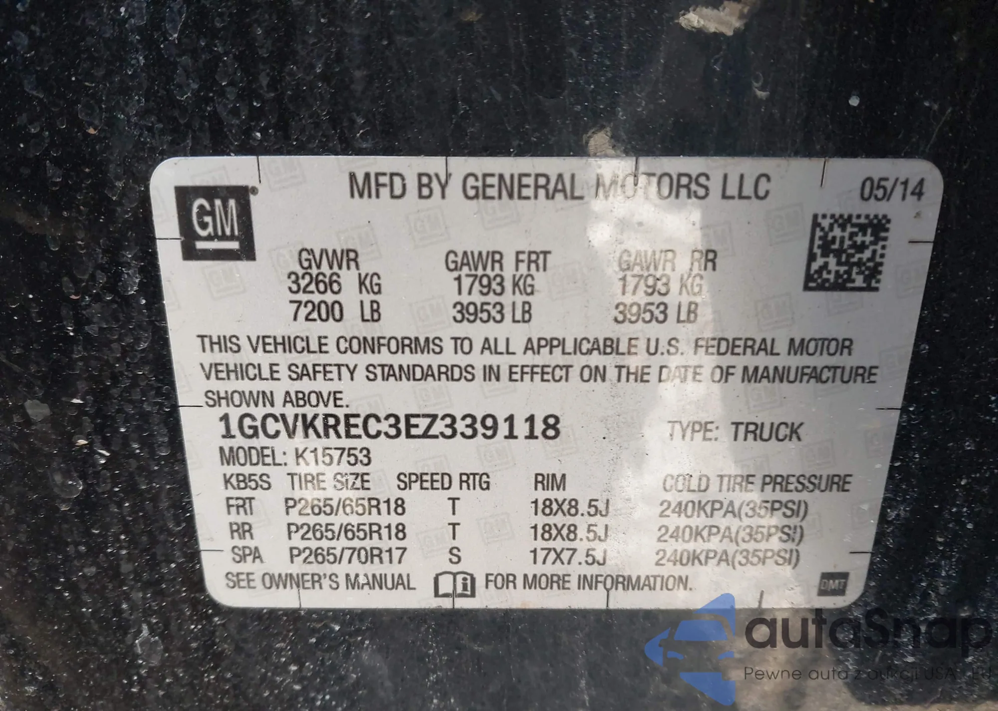 • VIN 1GCVKREC3EZ339118