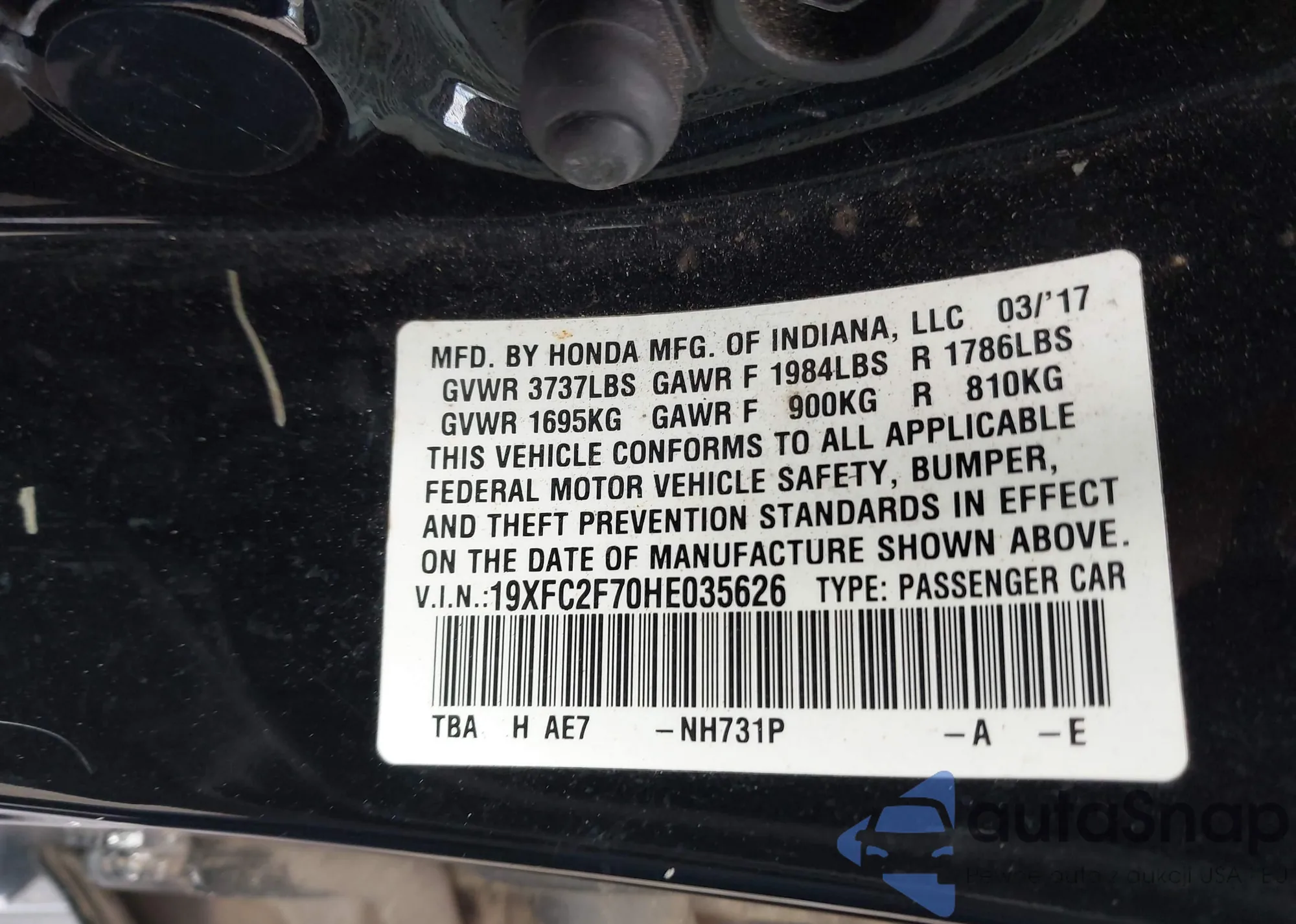 • VIN 19XFC2F70HE035626