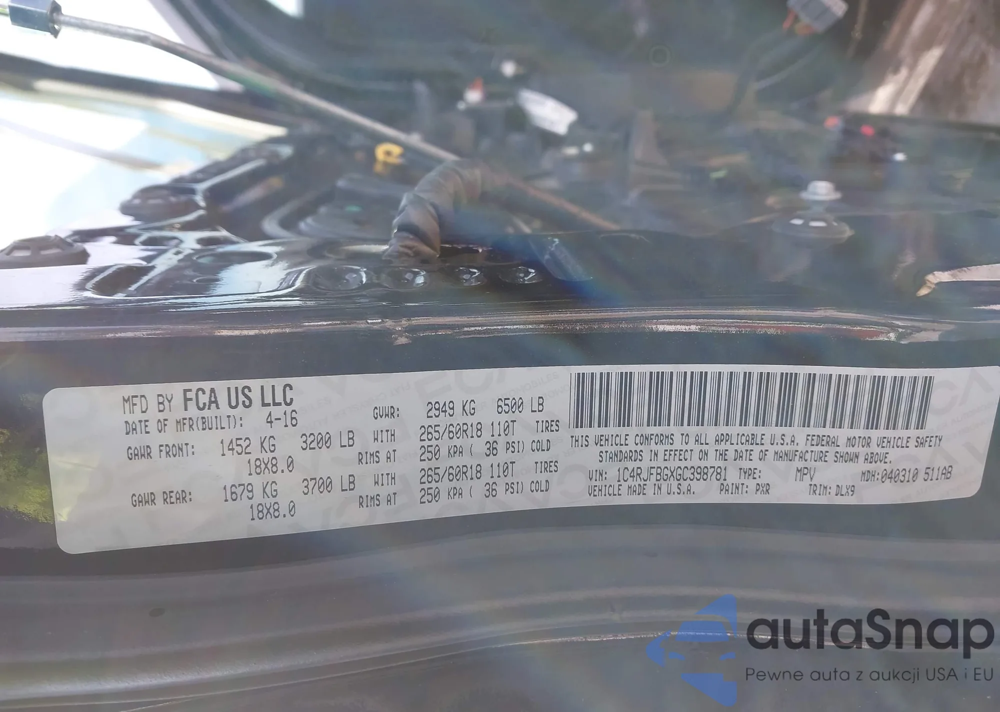 LOT: 43866155 VIN: 1C4RJFBGXGC398781