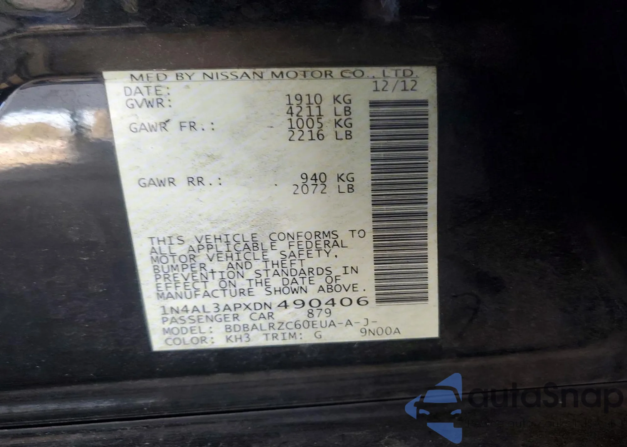 LOT: 76073735 VIN: 1N4AL3APXDN490406