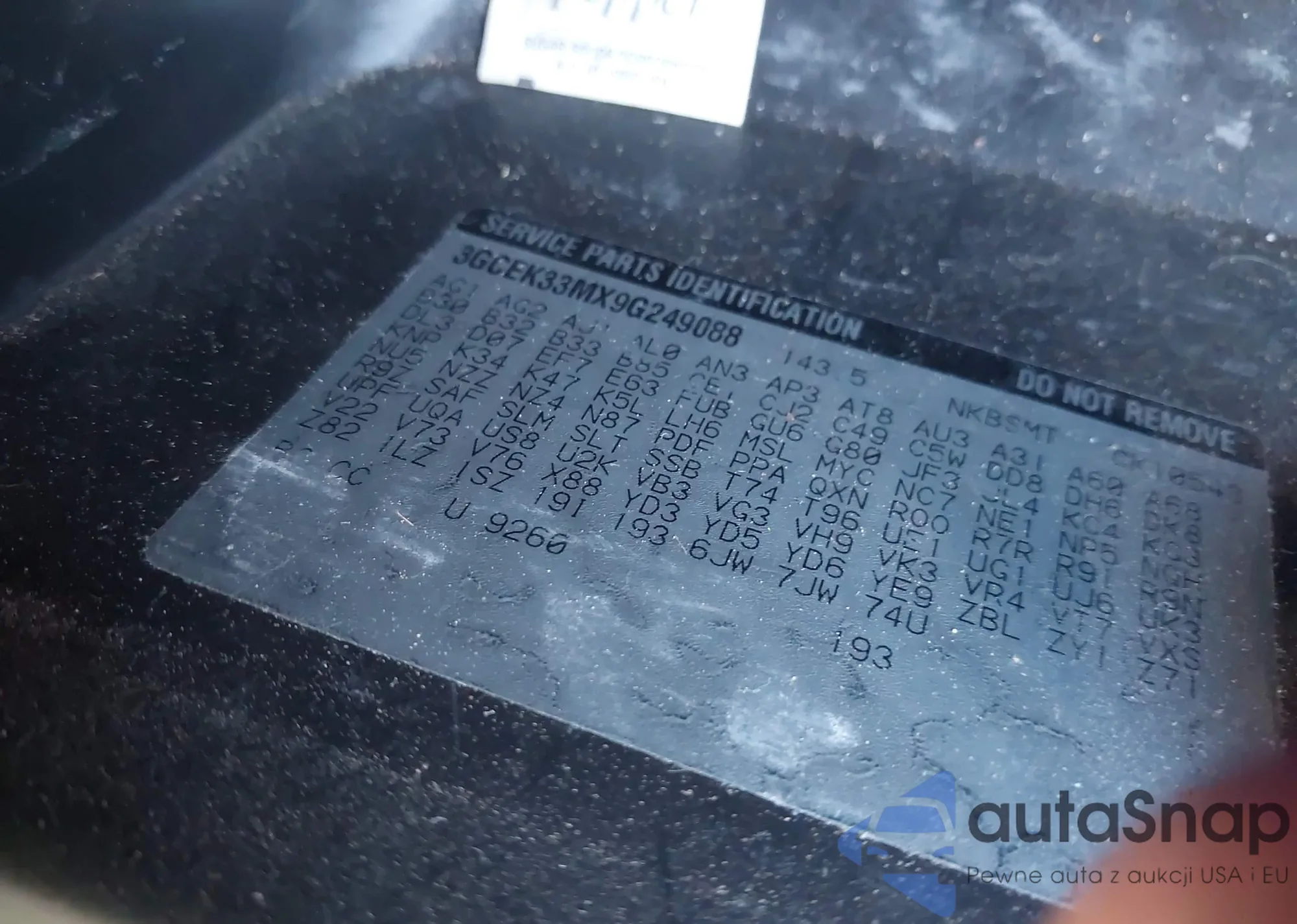 • VIN 3GCEK33MX9G249088