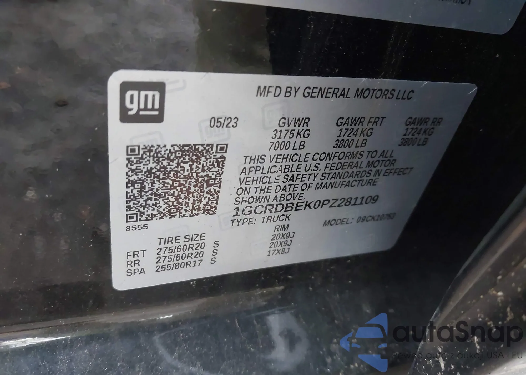 • VIN 2GCVKPEC9K1218893