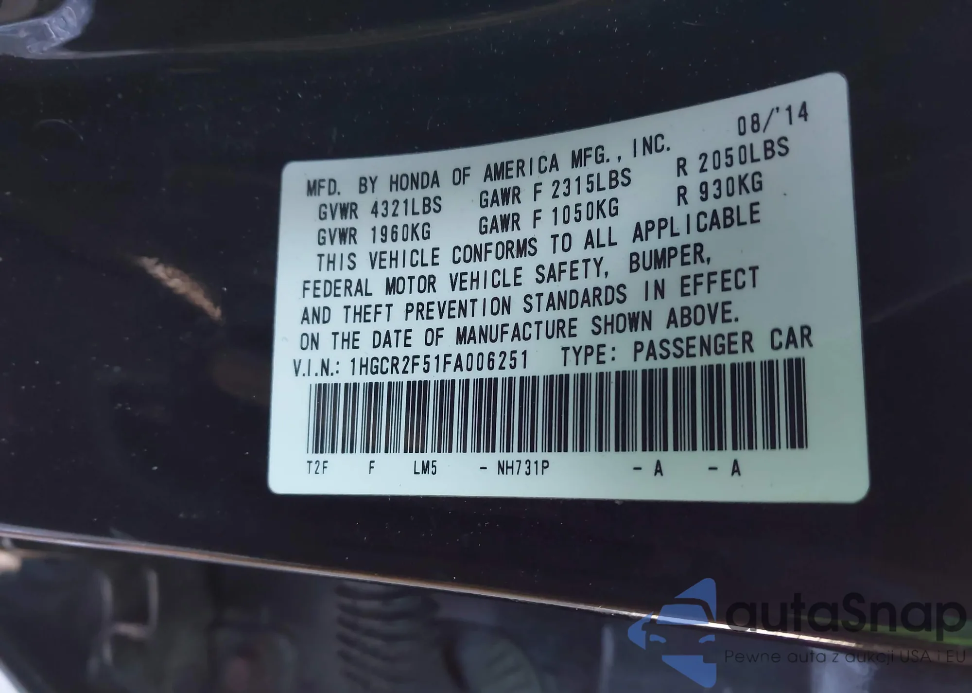 • VIN 1HGCR2F51FA006251