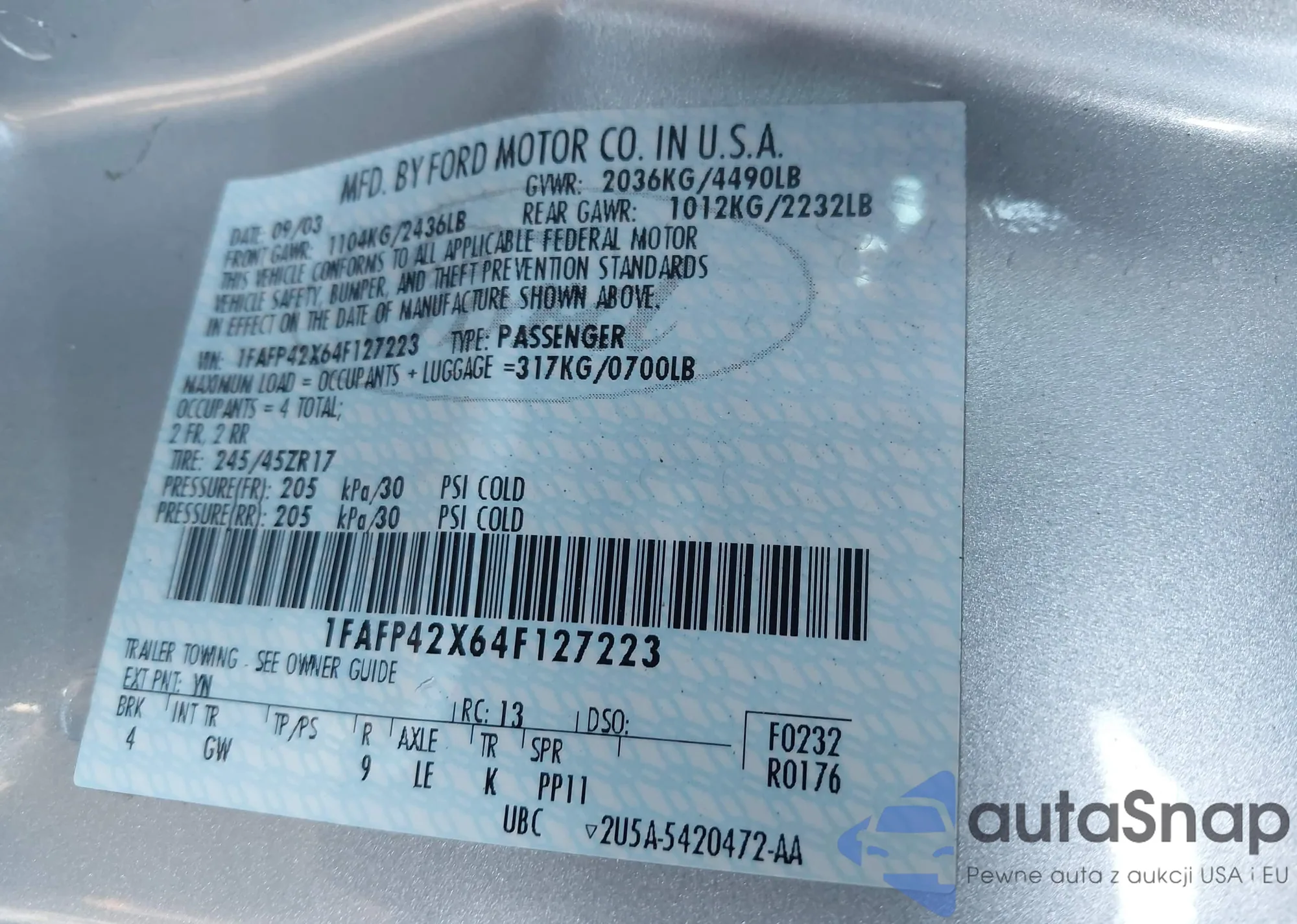 • VIN 1FAFP42X64F127223