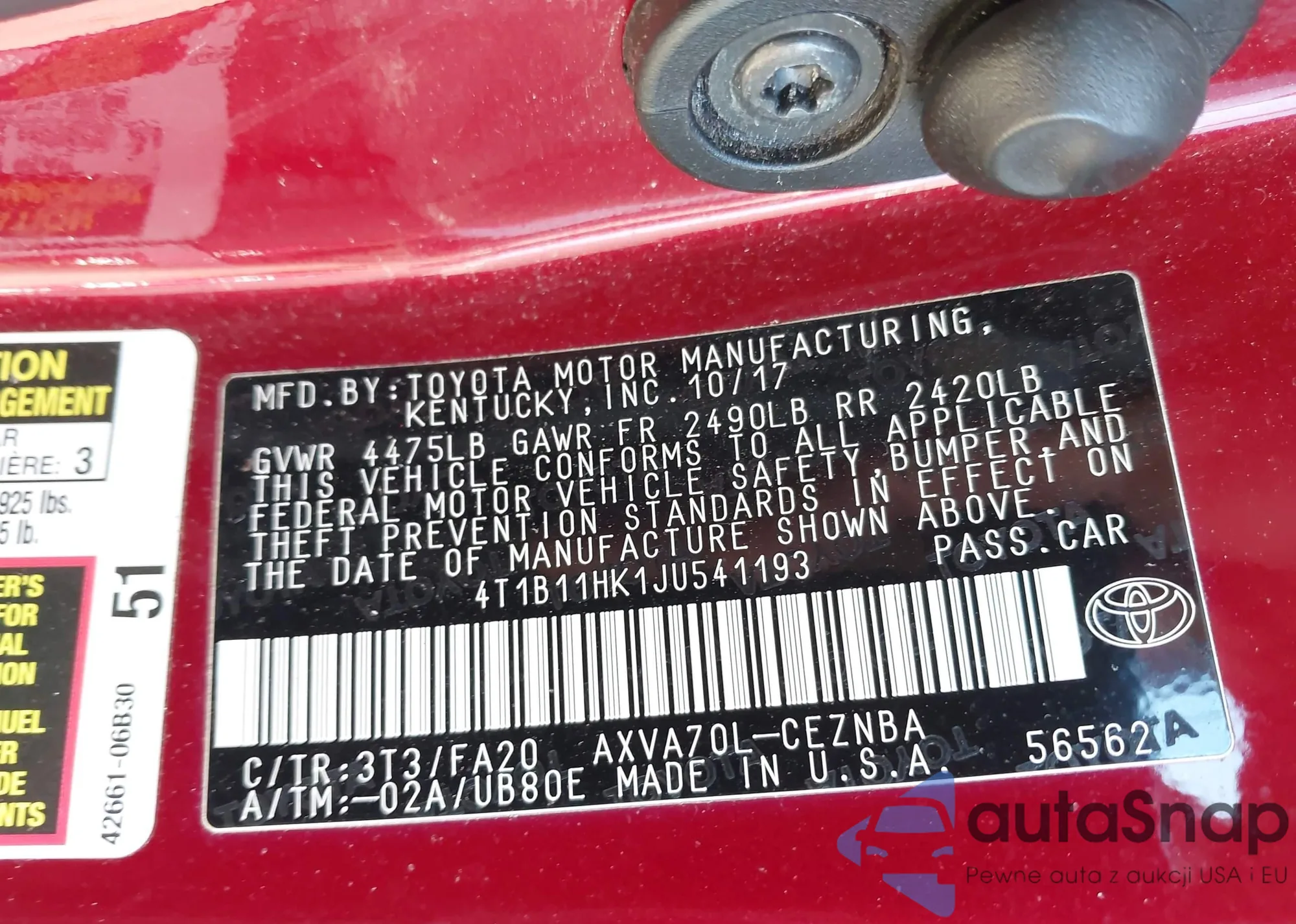 • VIN 4T1B11HK1JU541193