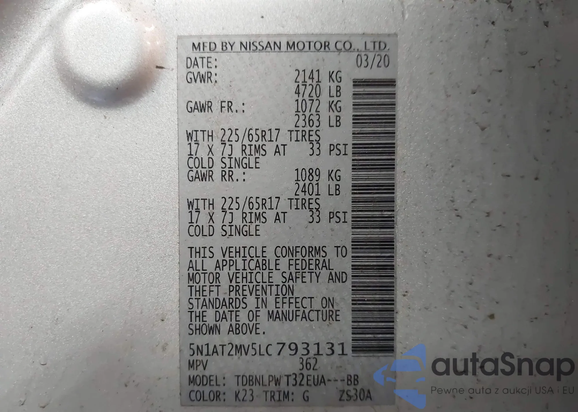 LOT: 44161811 VIN: 5N1AT2MV5LC793131