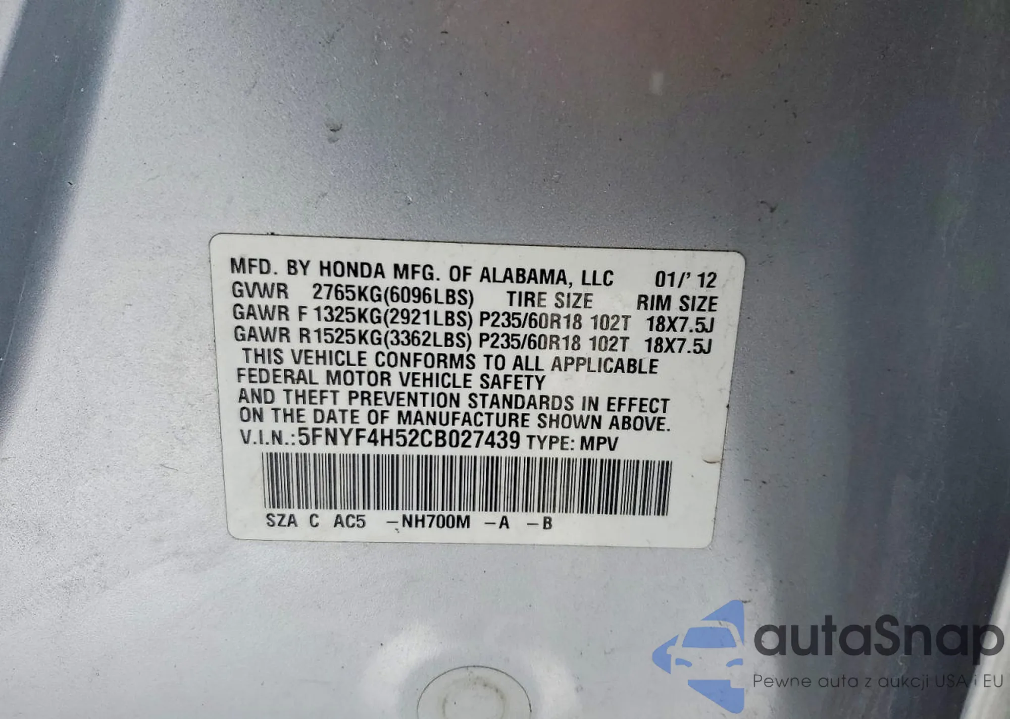 LOT: 93879225 VIN: JN1AV7APXEM692054