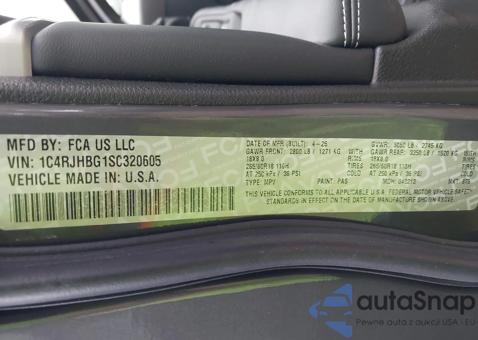 LOT: 43975433 VIN: 1C4RJHBG1SC320605