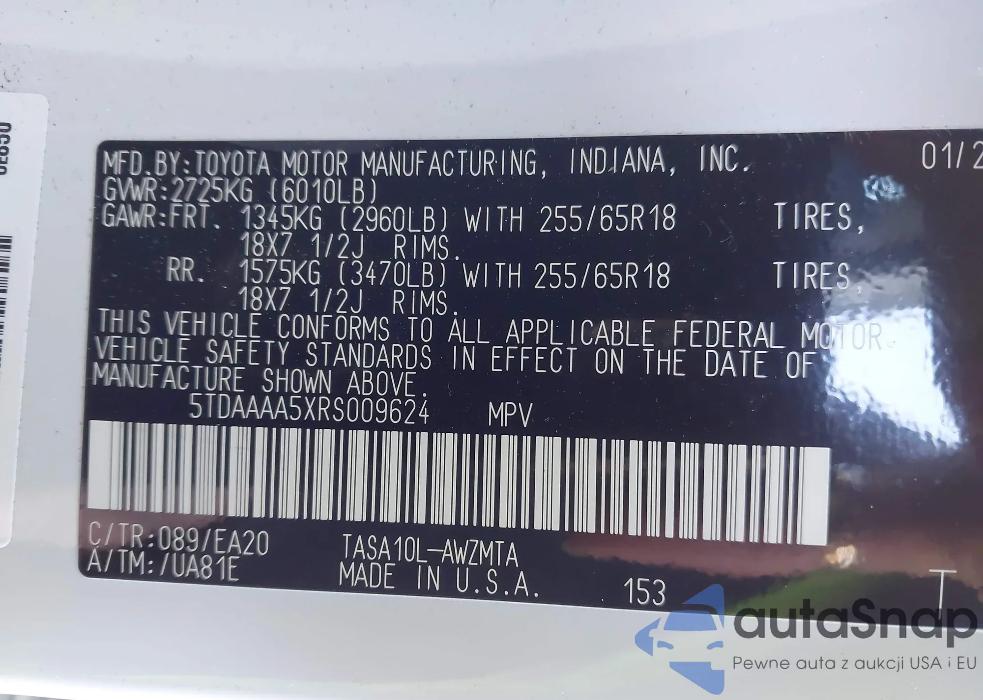 • VIN 5TDAAAA5XRS009624