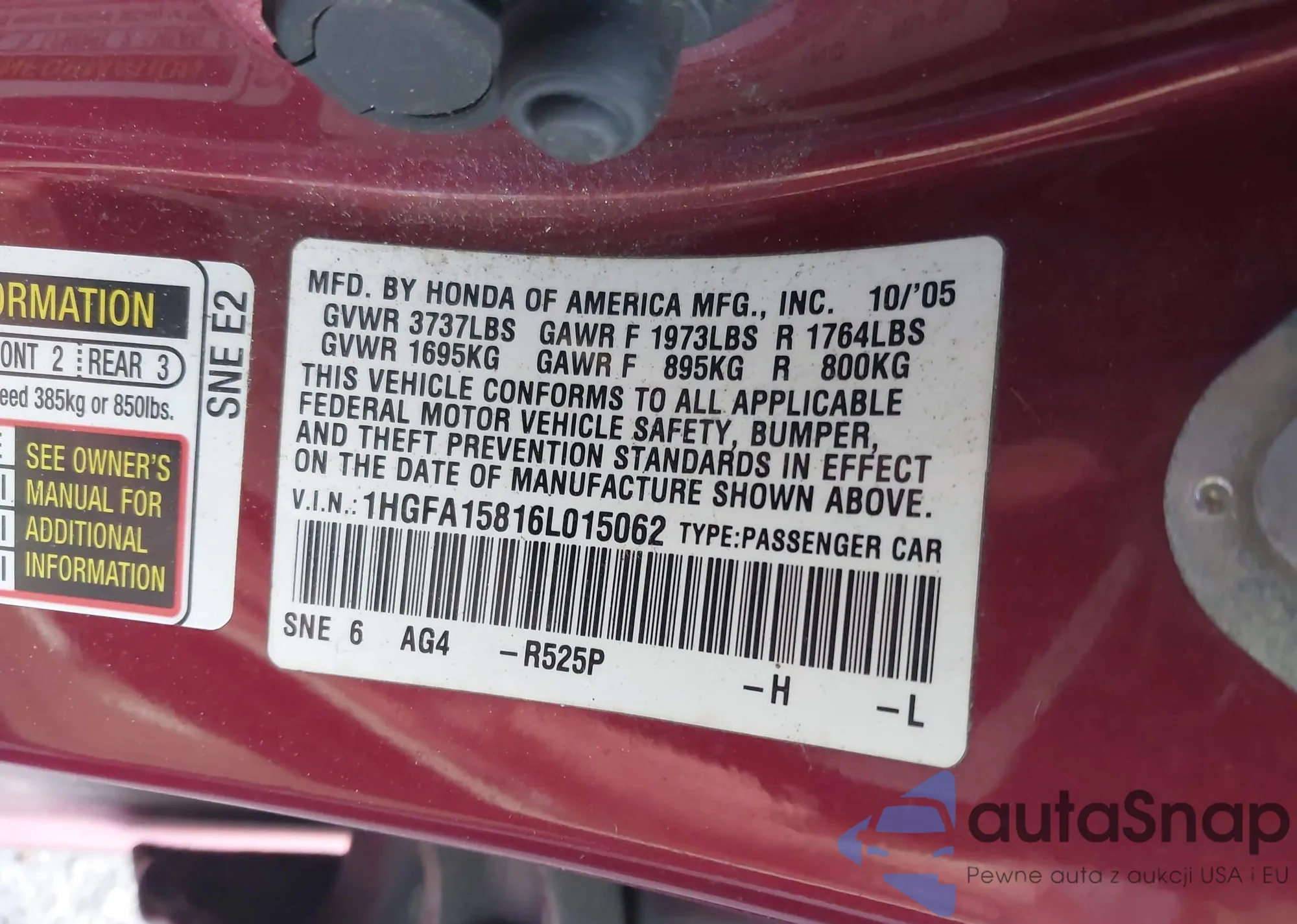 • VIN 1HGFA15816L015062
