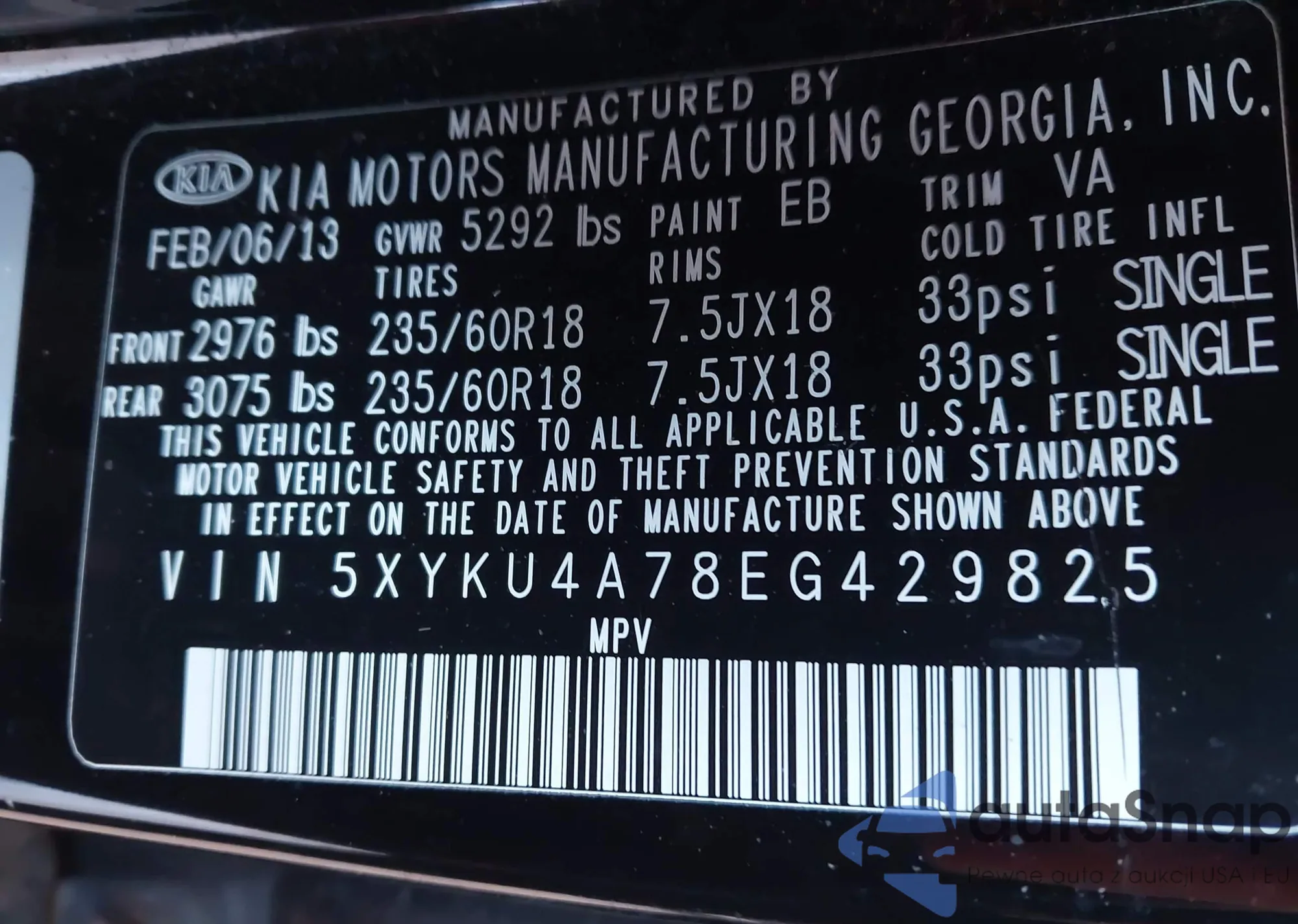 LOT: 44232538 VIN: 5NPEB4AC0EH892583