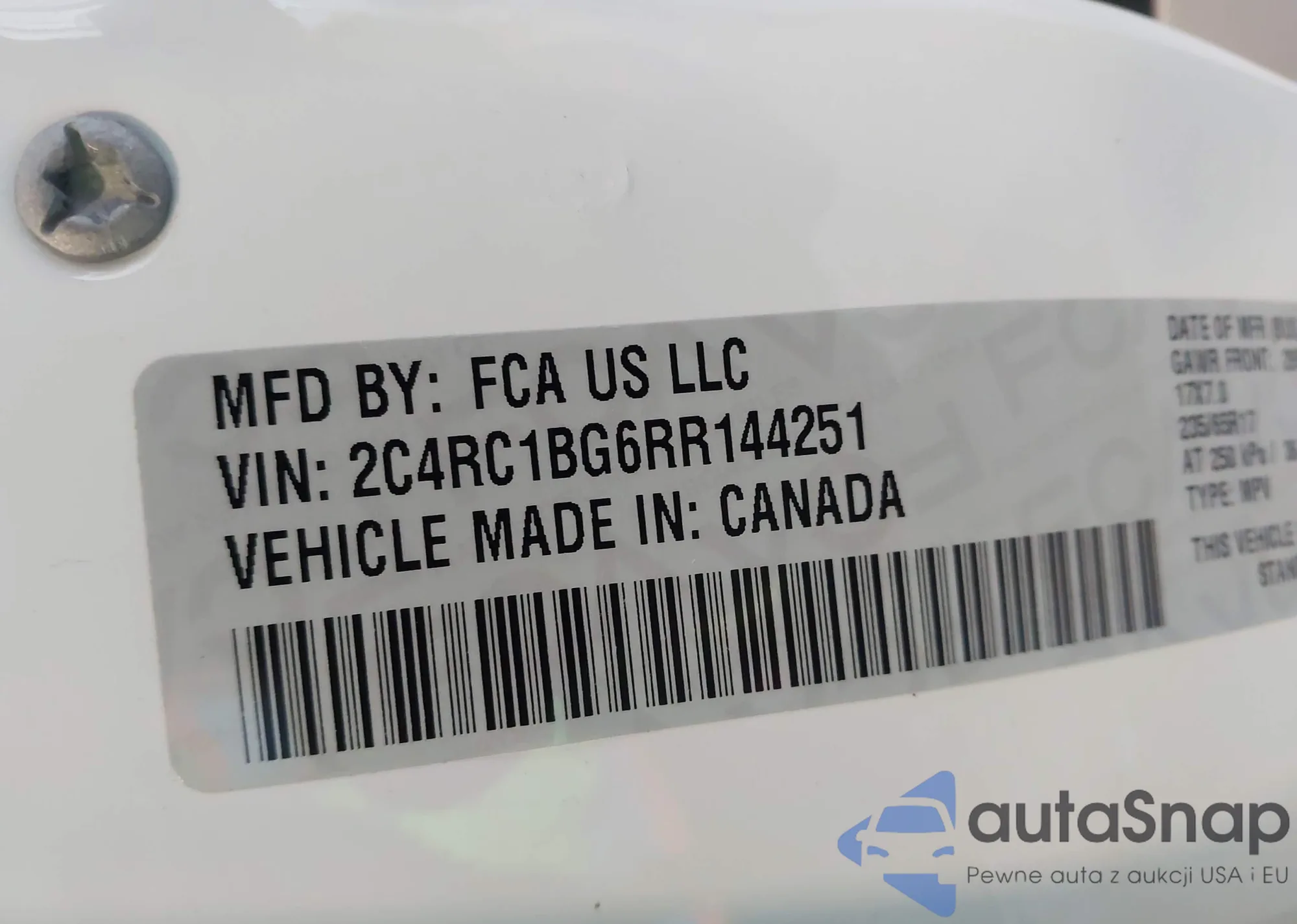 • VIN 2C4RC1BG6RR144251