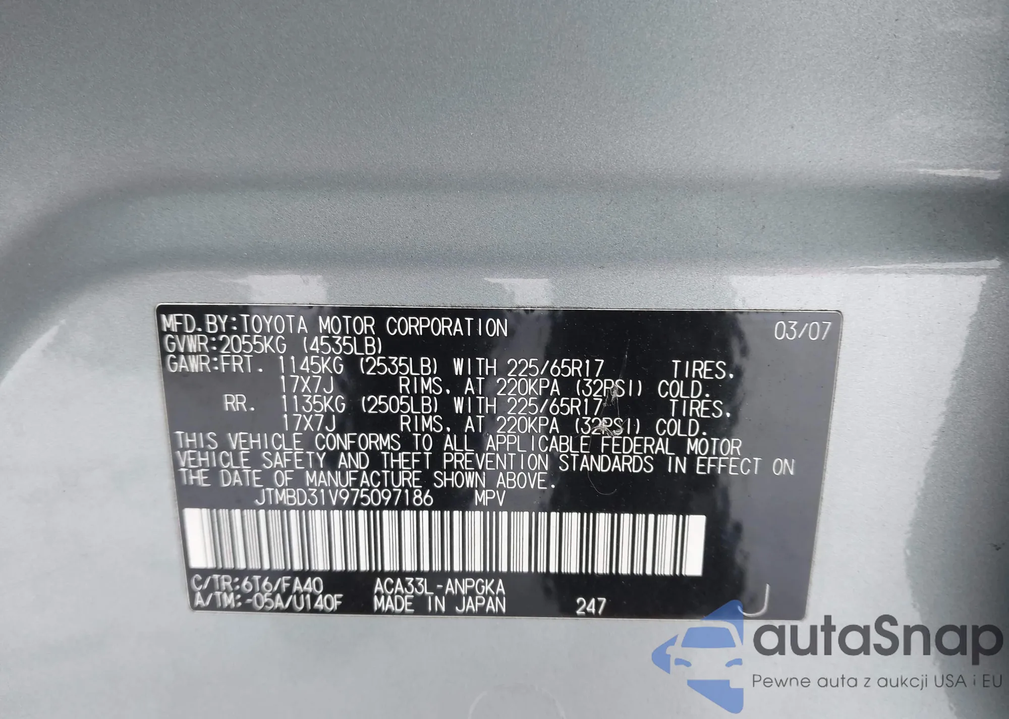 LOT: 43860469 VIN: JTMBD31V975097186