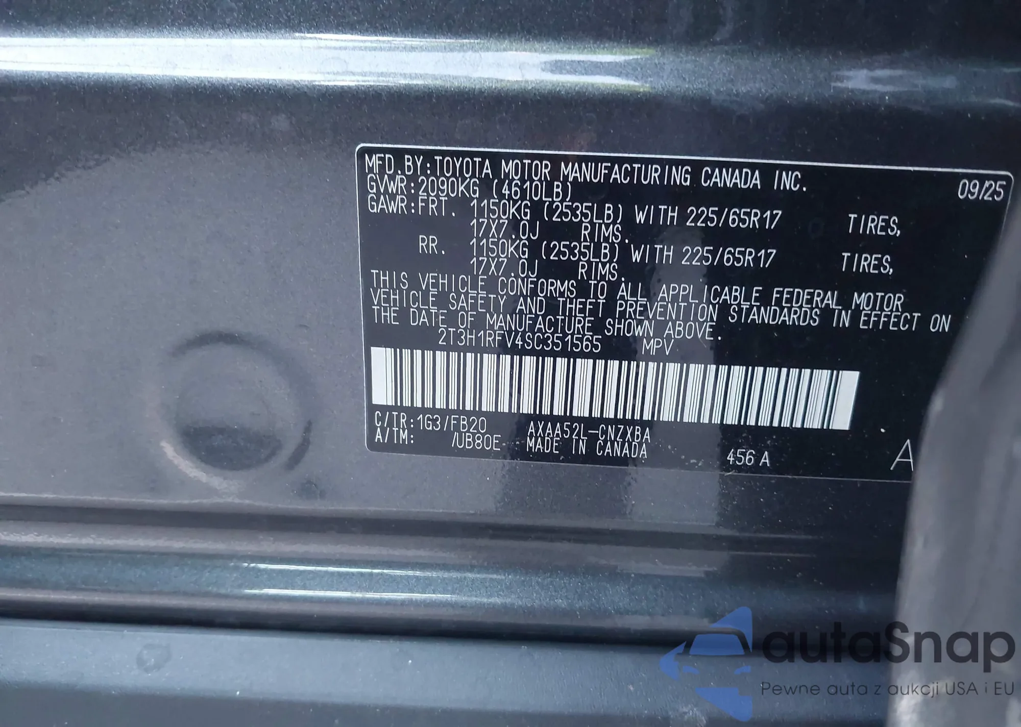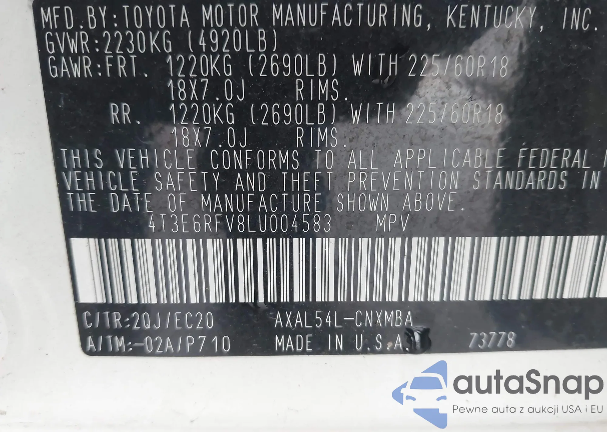 • VIN 4T3E6RFV8LU004583