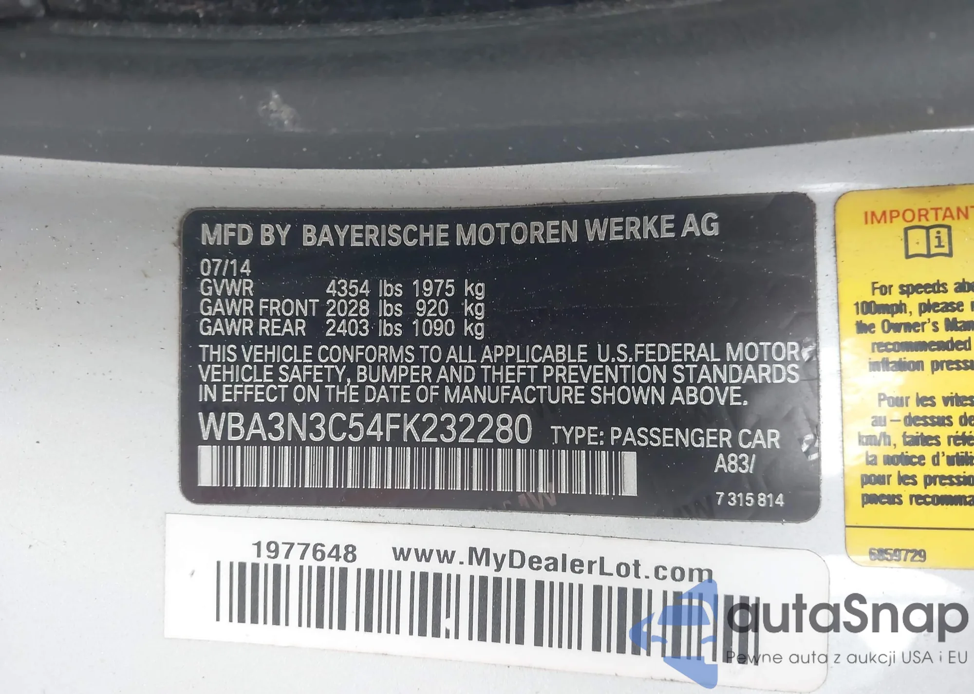 LOT: 44218576 VIN: WBAPK7C51BF086781
