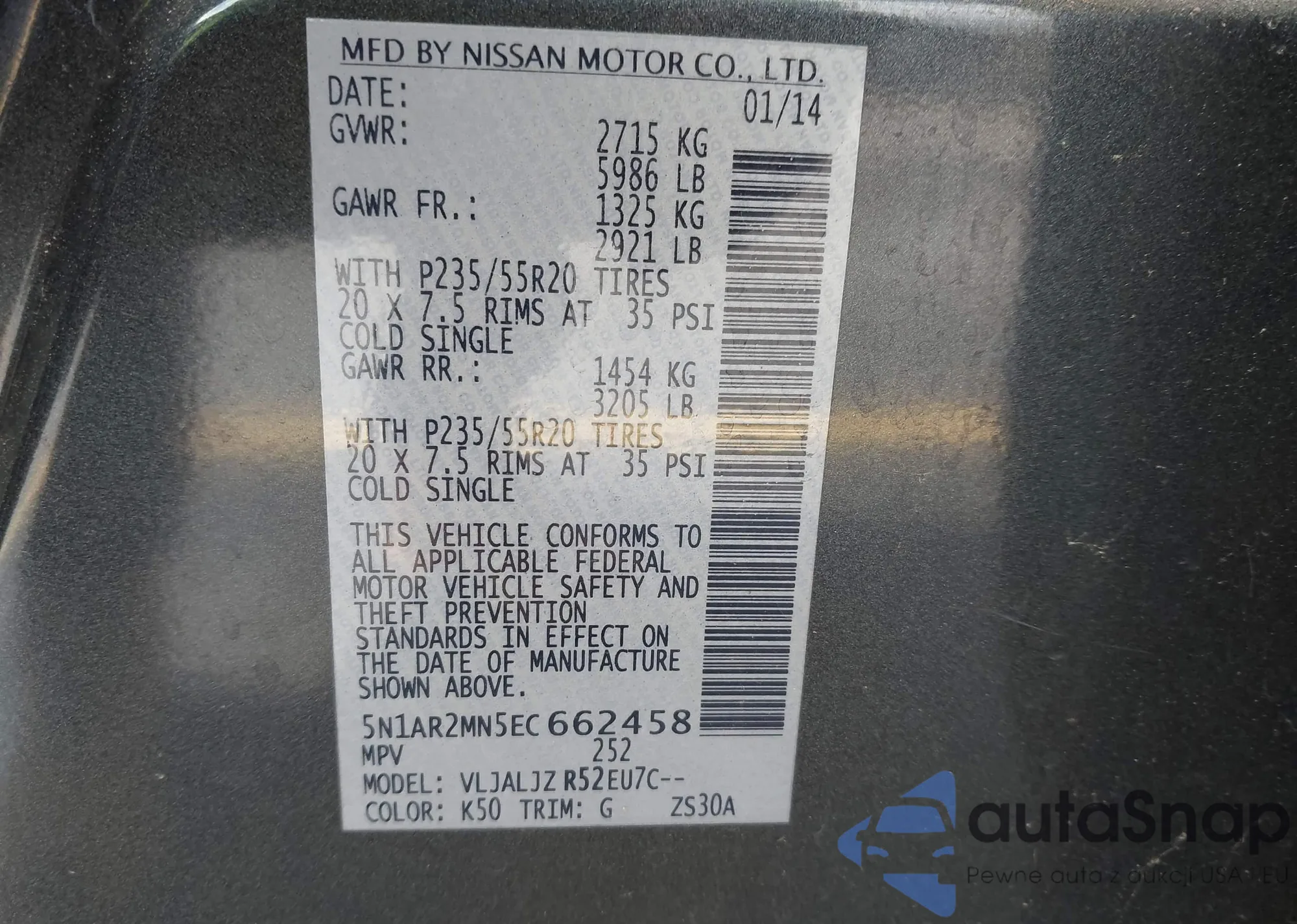 • VIN 5N1AL0MM9FC524582
