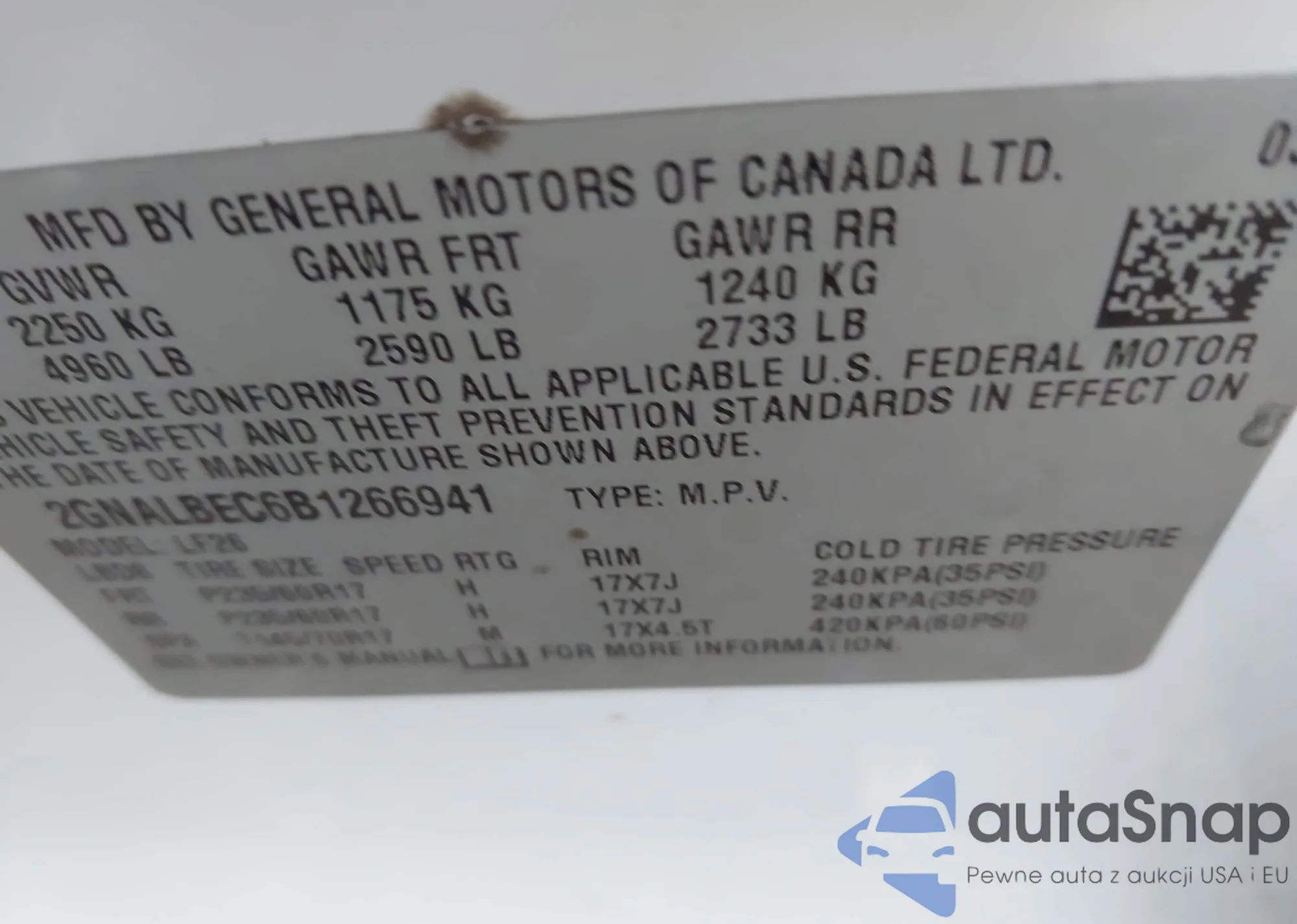 • VIN 2GNALBEC6B1266941