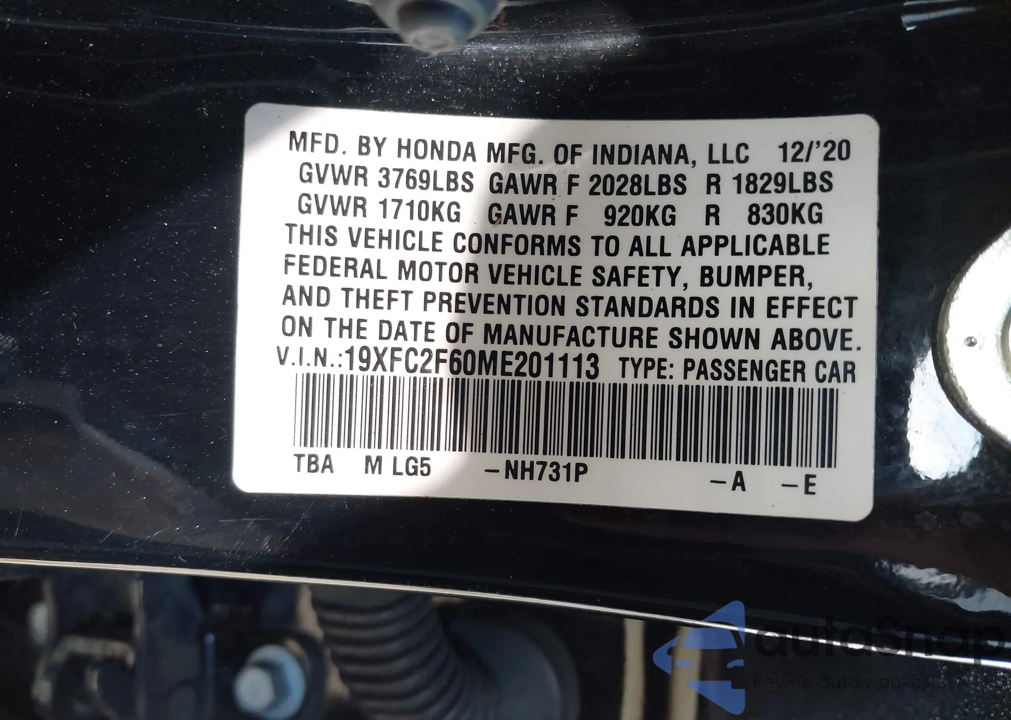 LOT: 44139437 VIN: 19XFC2F60ME201113