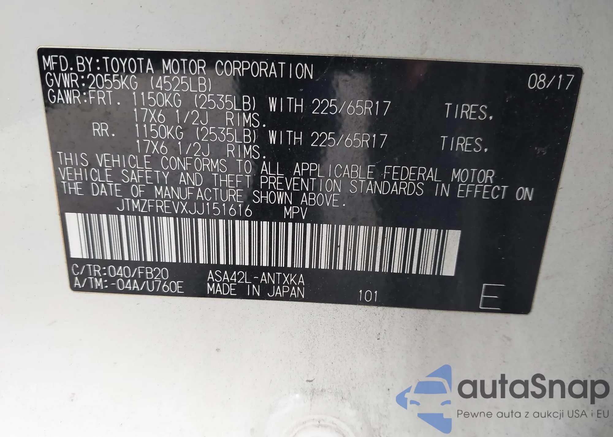 LOT: 44164506 VIN: JTMZFREVXJJ151616