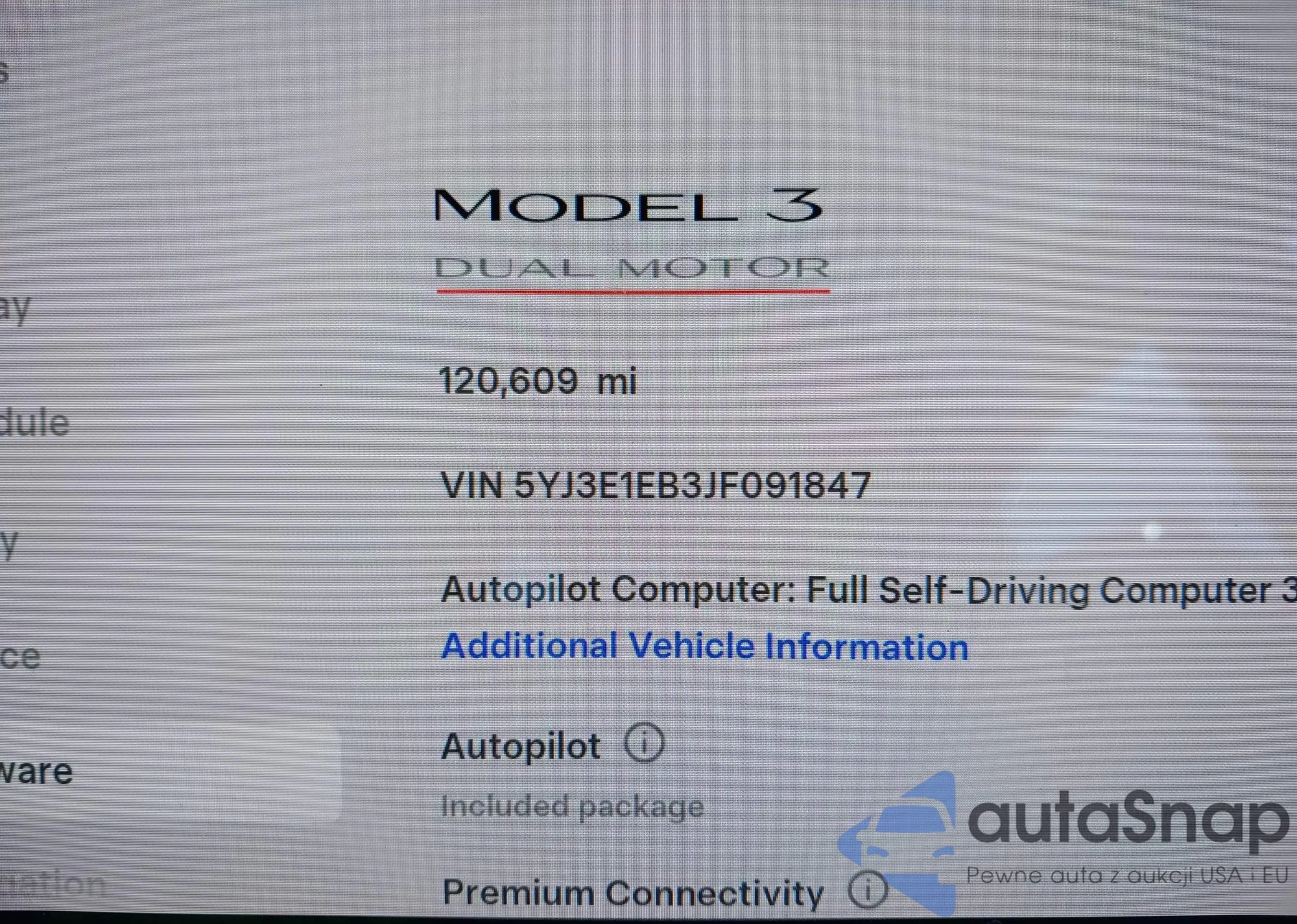 LOT: 44203885 VIN: 5YJ3E1EB3JF091847