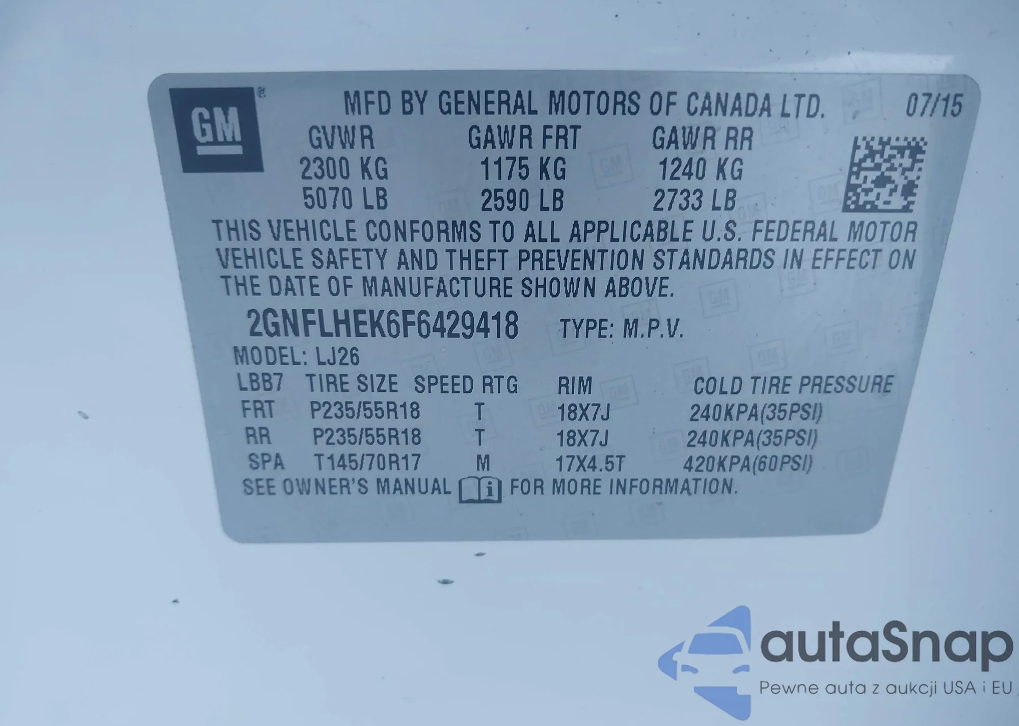 • VIN 2GNFLHEK6F6429418