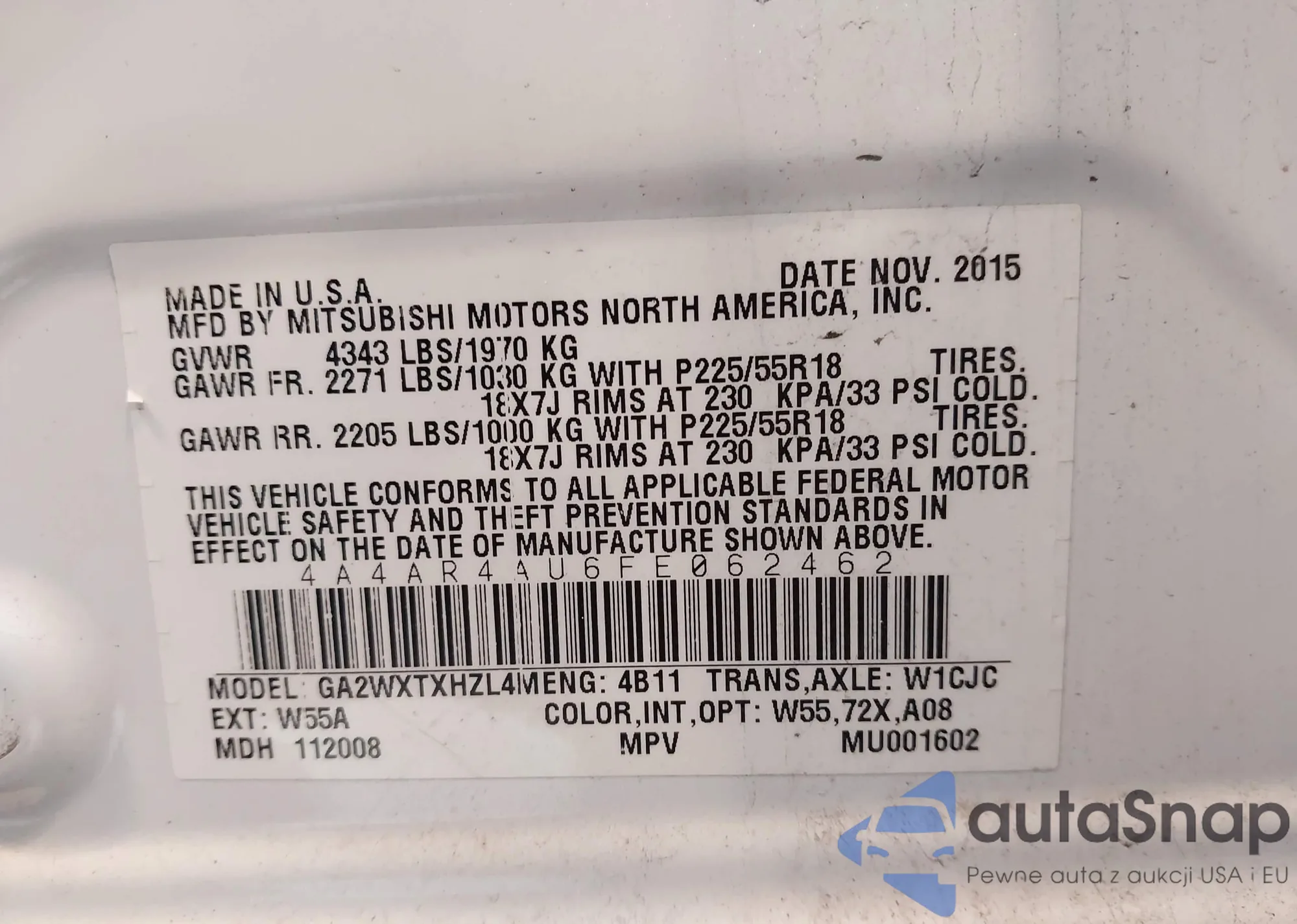 LOT: 44303095 VIN: 4A4AR4AU6FE062462