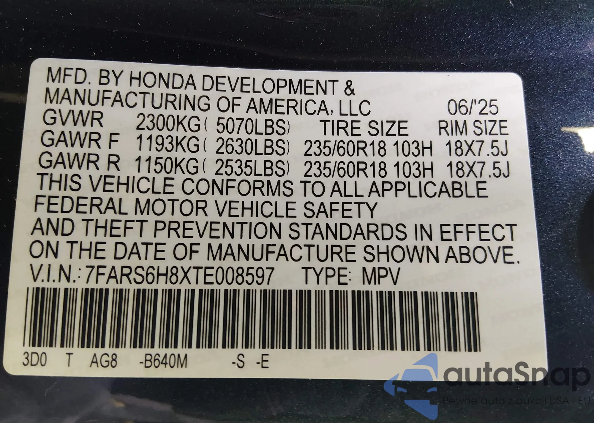 • VIN 7FARS6H8XTE008597