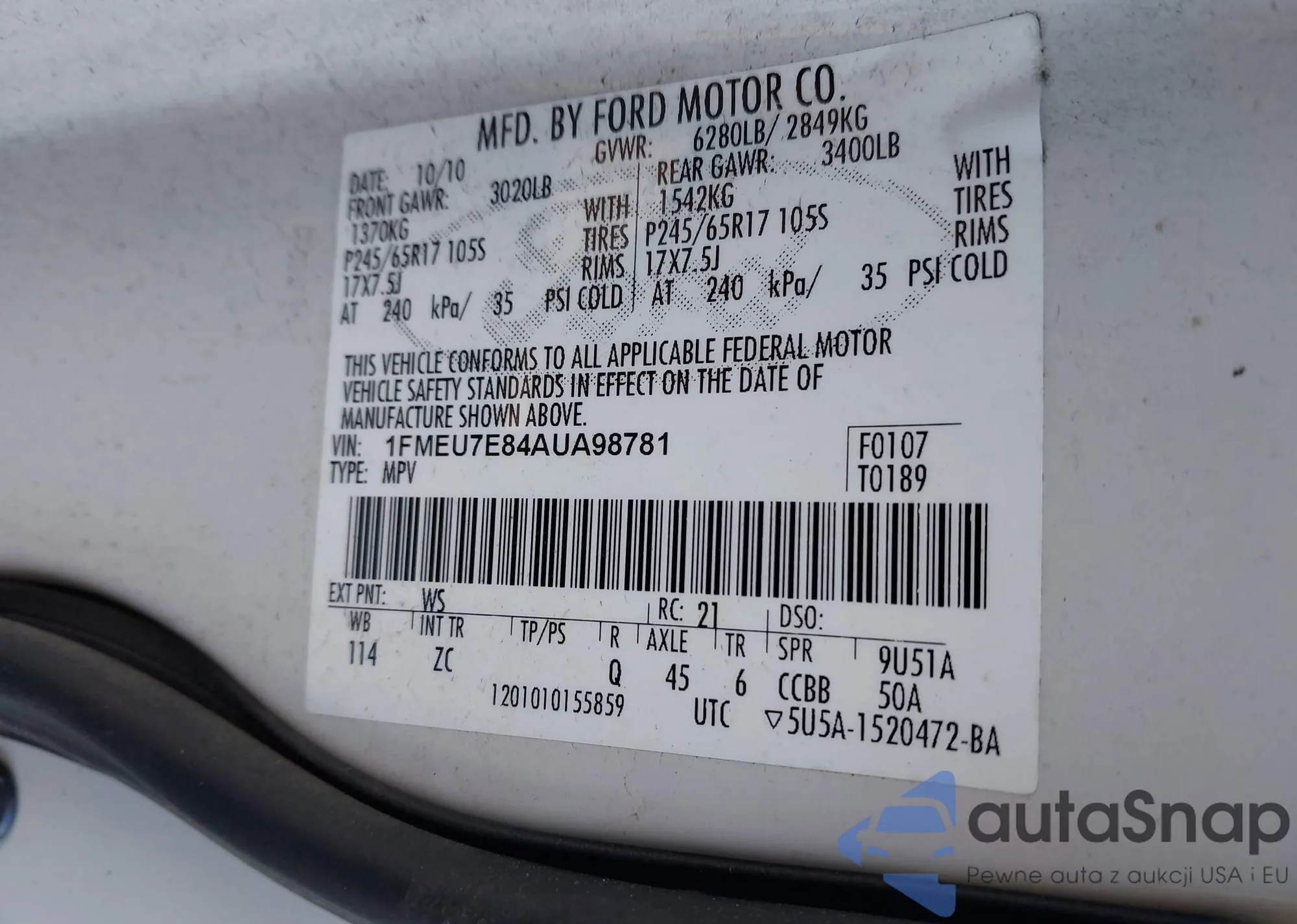 • VIN 1FMEU7E84AUA98781