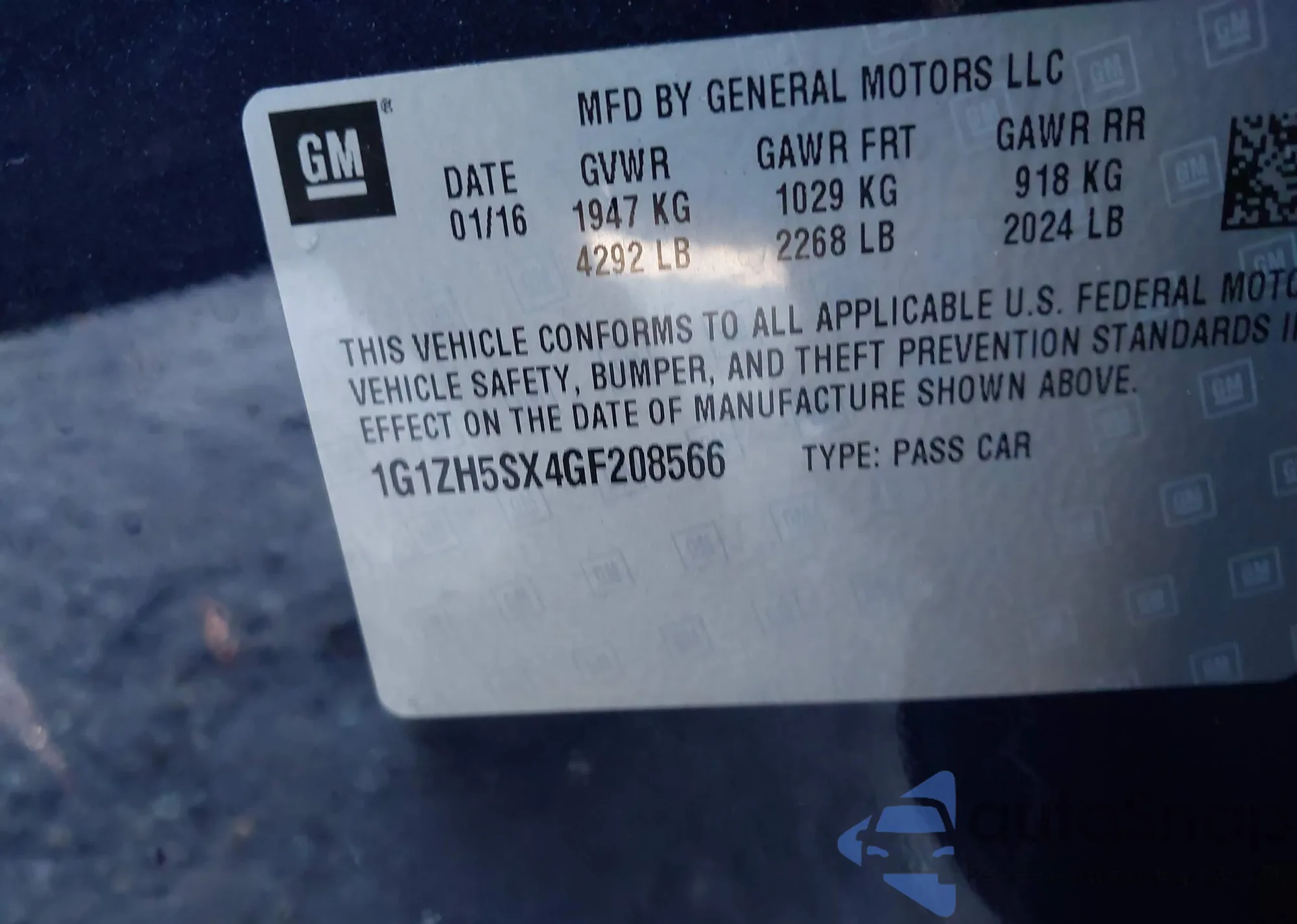 • VIN 1G1ZH5SX4GF208566