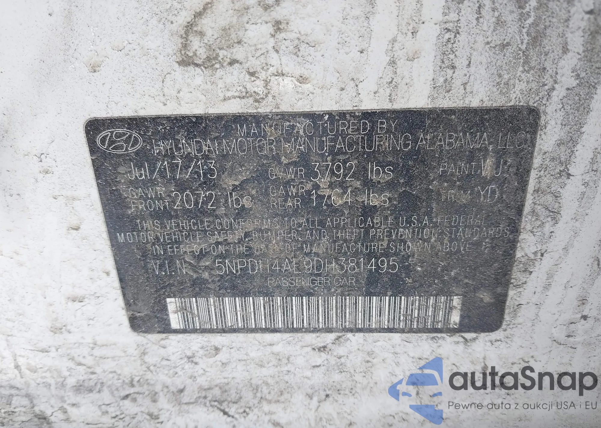 • VIN 5NPDH4AE9DH381495