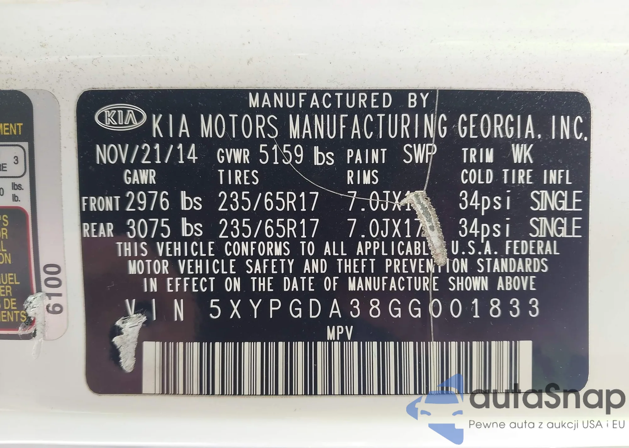 LOT: 44097339 VIN: KNDERCAAXM7130823