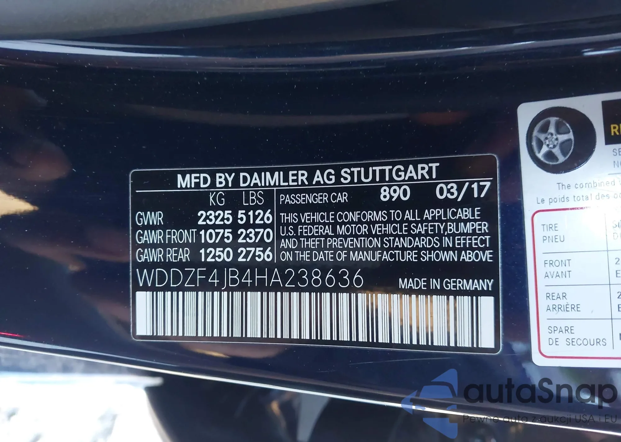• VIN WDDZF4JB4HA238636