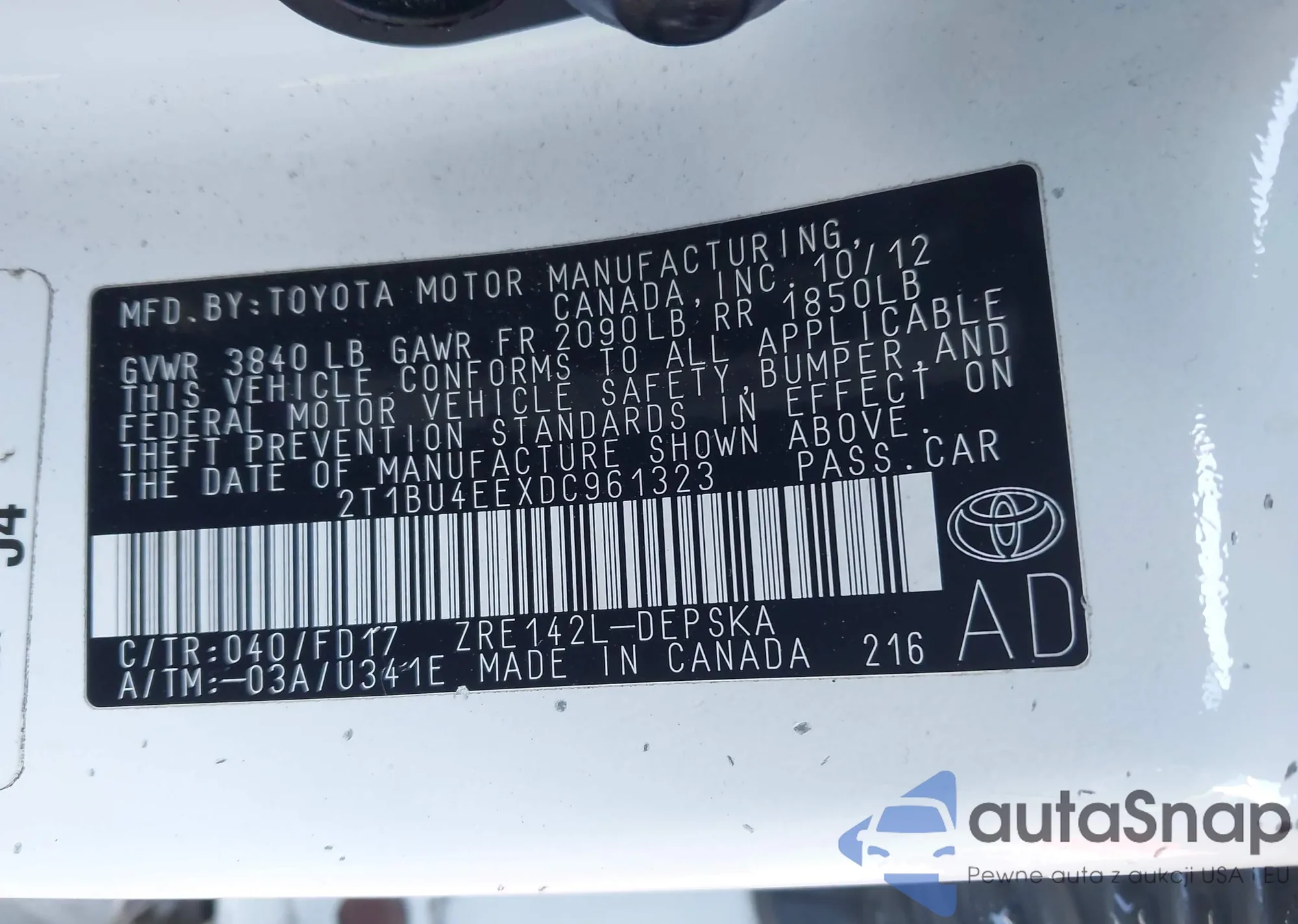 • VIN 2T1BU4EEXDC961323