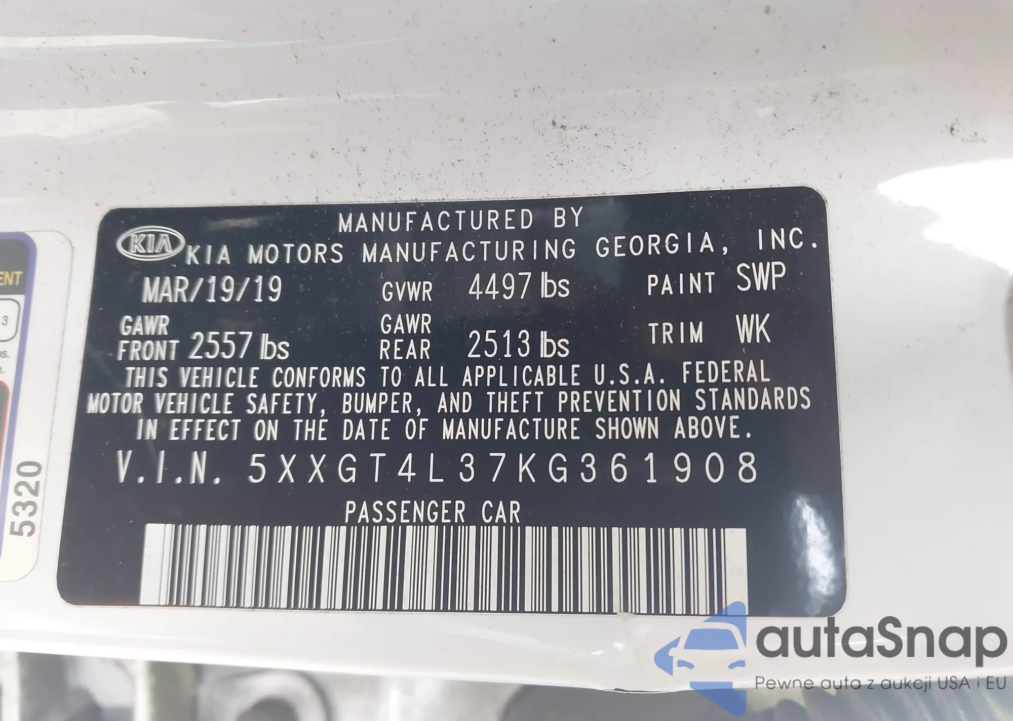 • VIN 5XXGT4L37KG361908