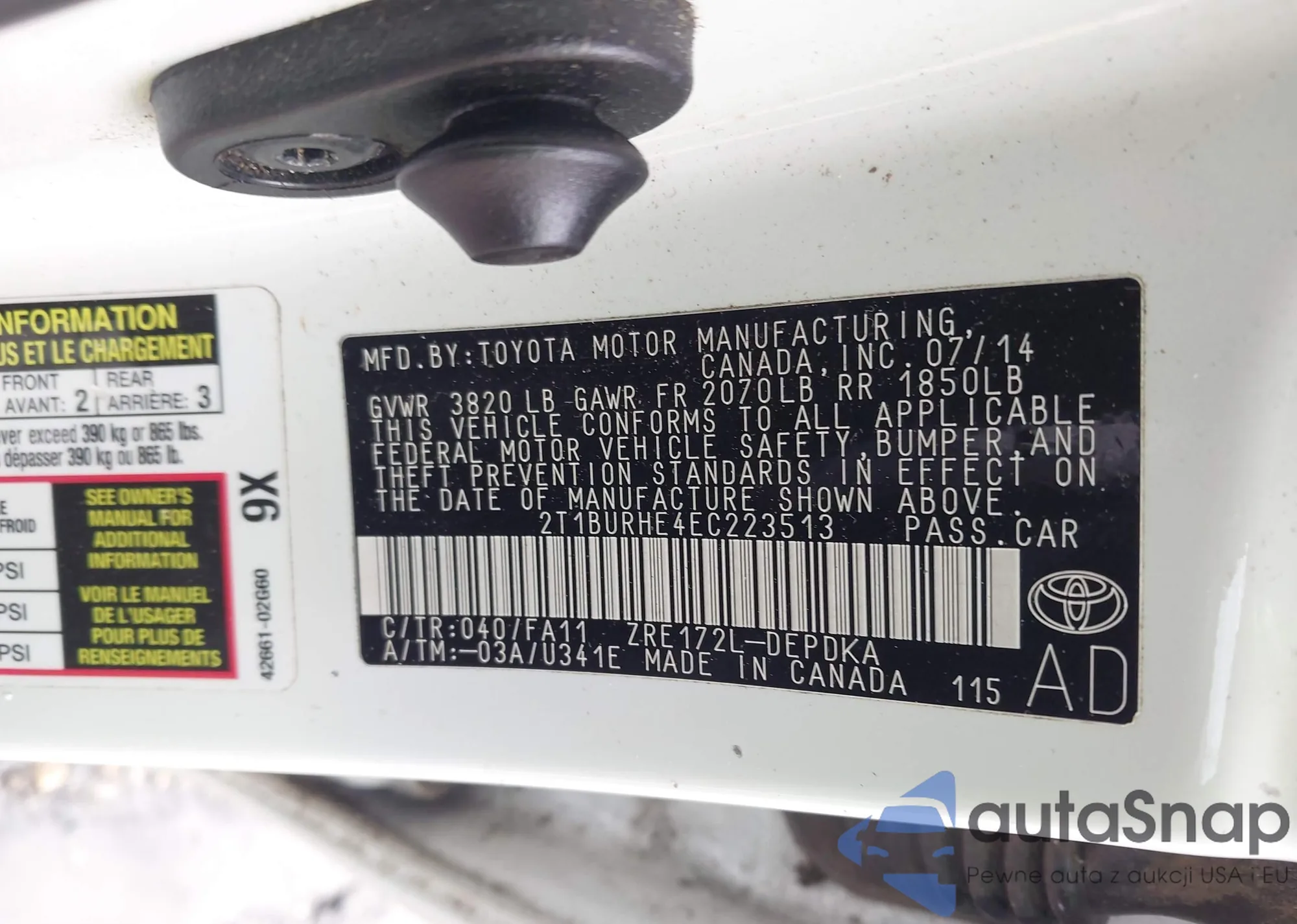LOT: 43564822 VIN: 2T1BURHE4EC223513