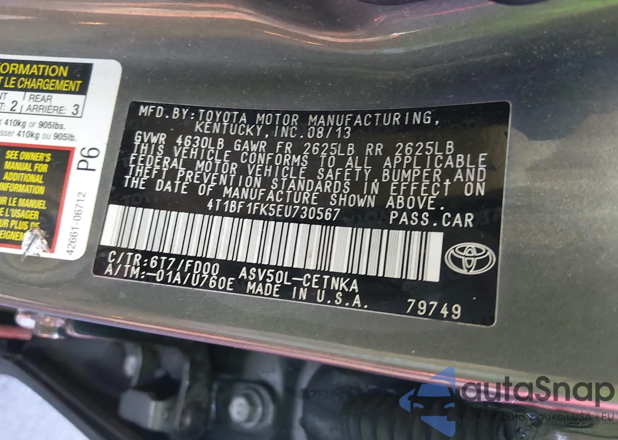 • VIN 4T1BF1FK5EU730567