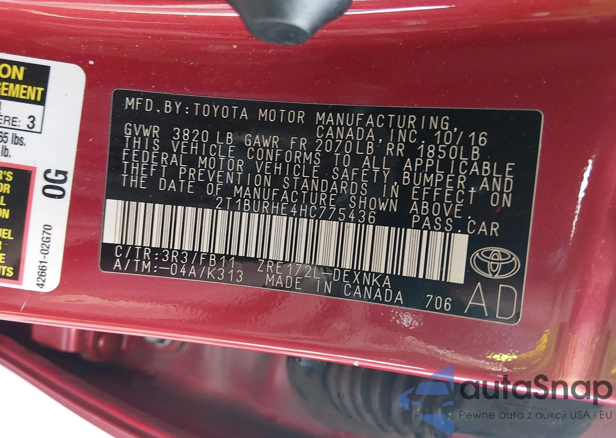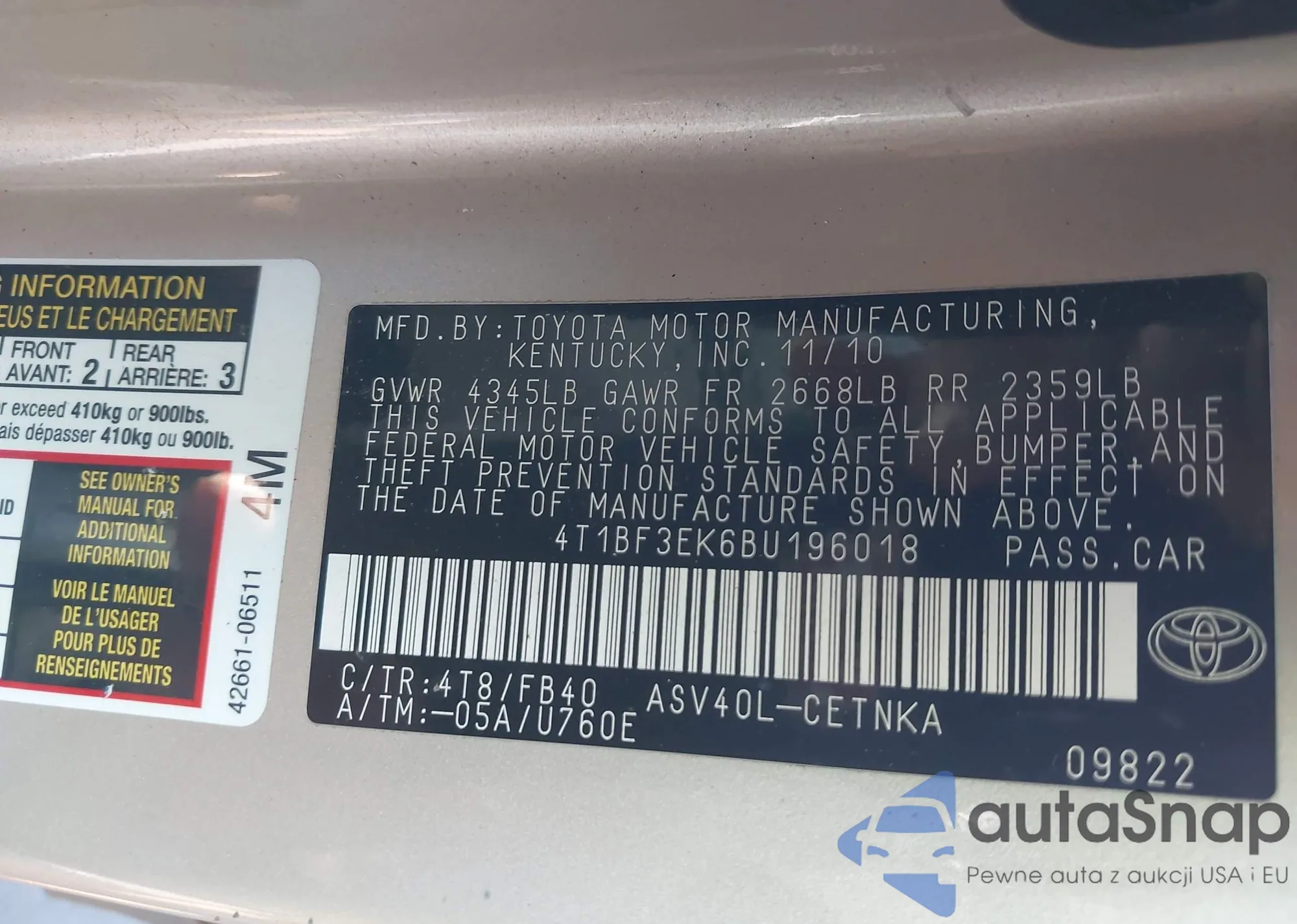 • VIN 4T1BF3EK6BU196018