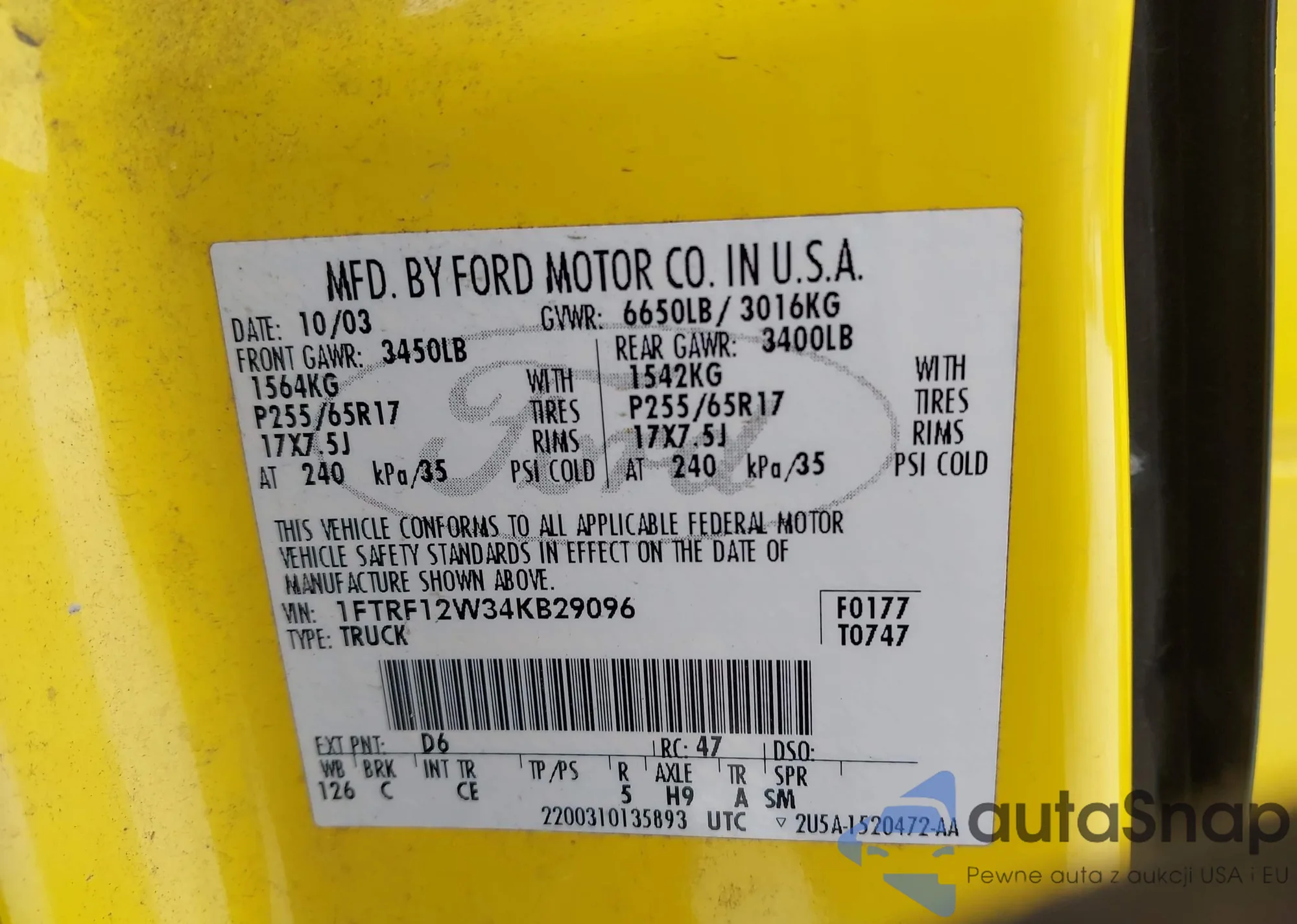 LOT: 43931998 VIN: 1FTRF12W34KB29096
