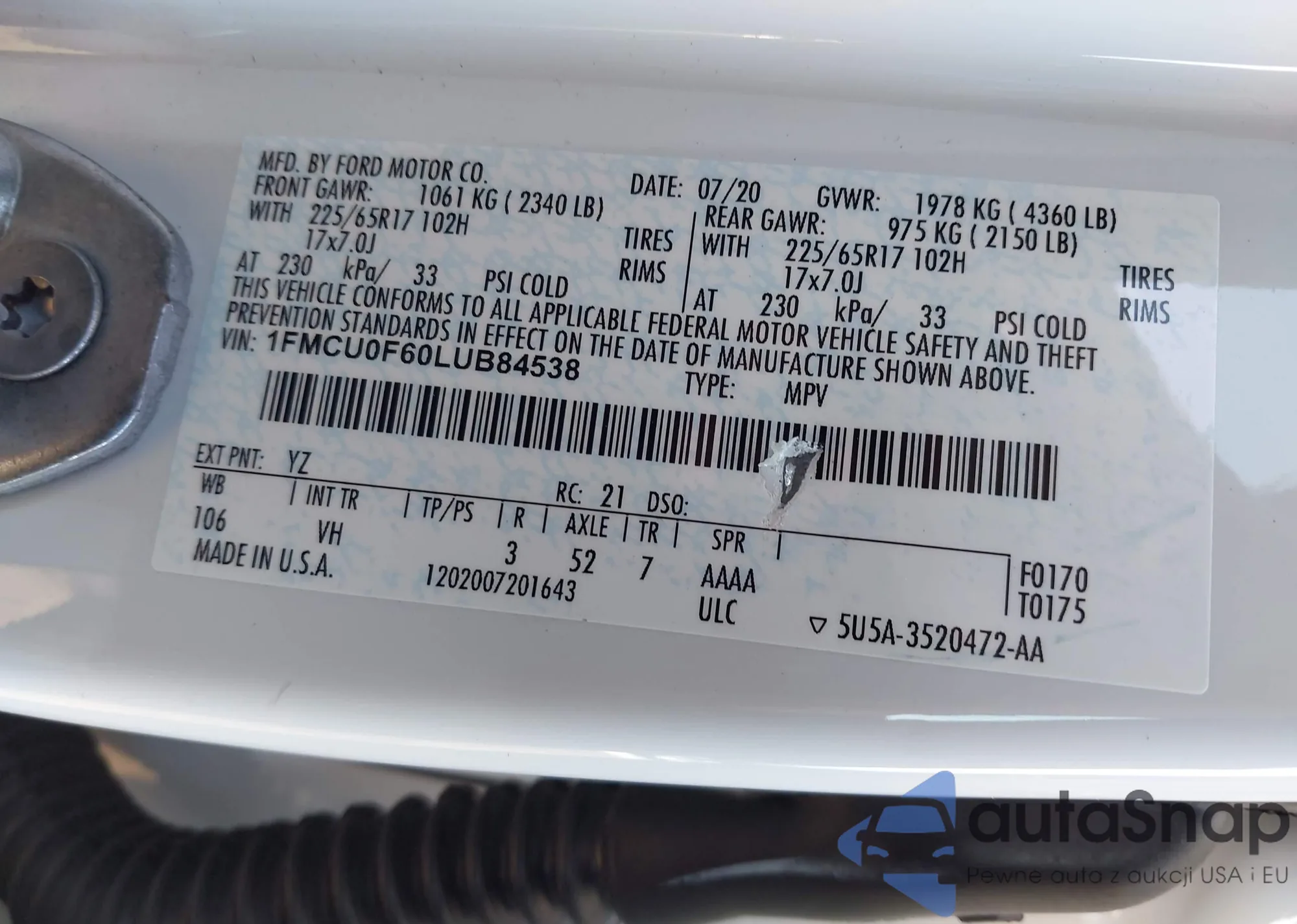 • VIN 2FMDK38C37BB12226
