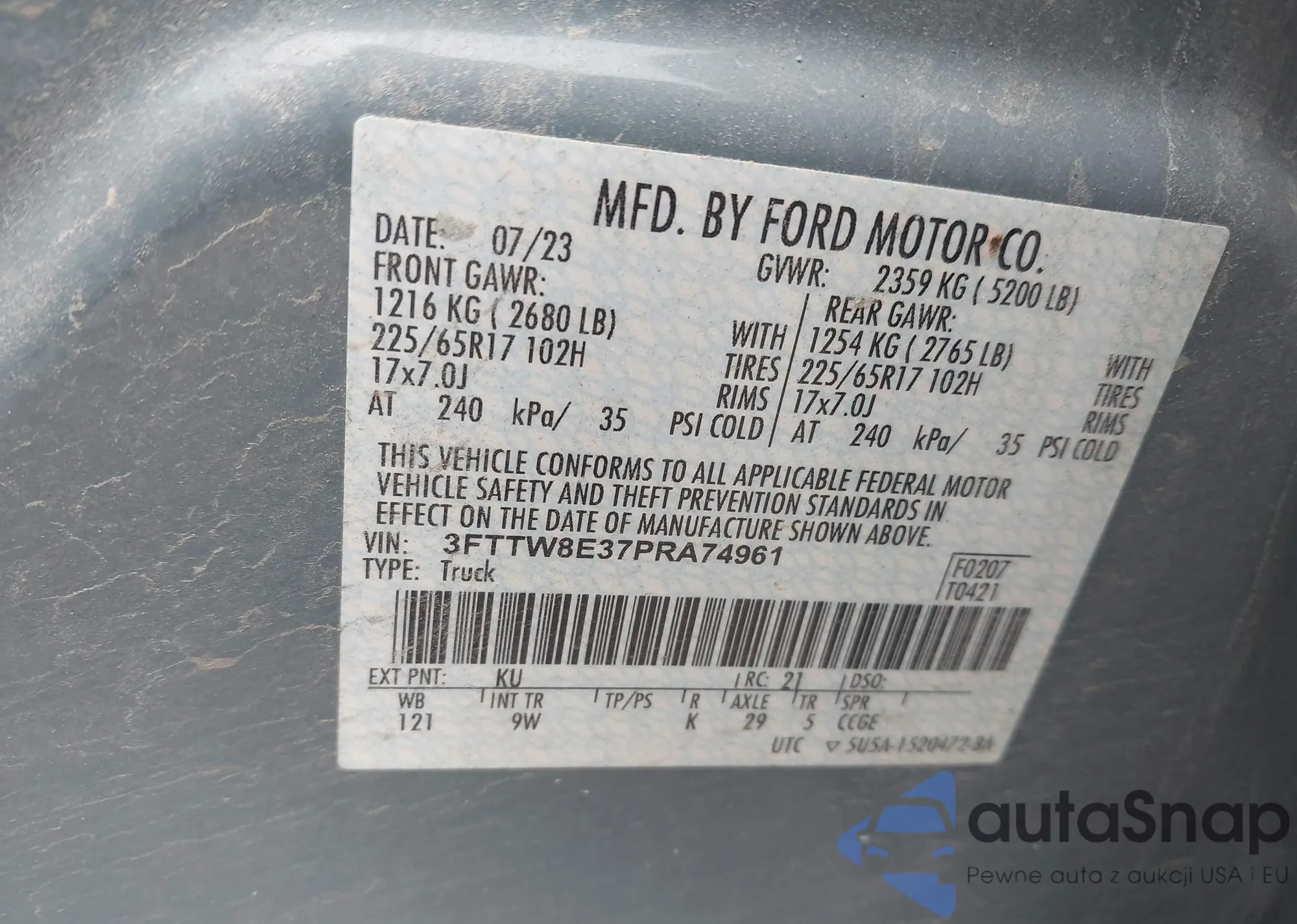 • VIN 1HGCR2F35FA051157