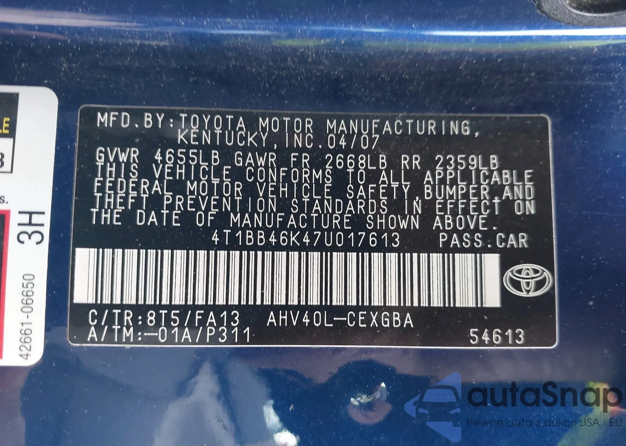 LOT: 44173704 VIN: 2T1BR32E56C711944