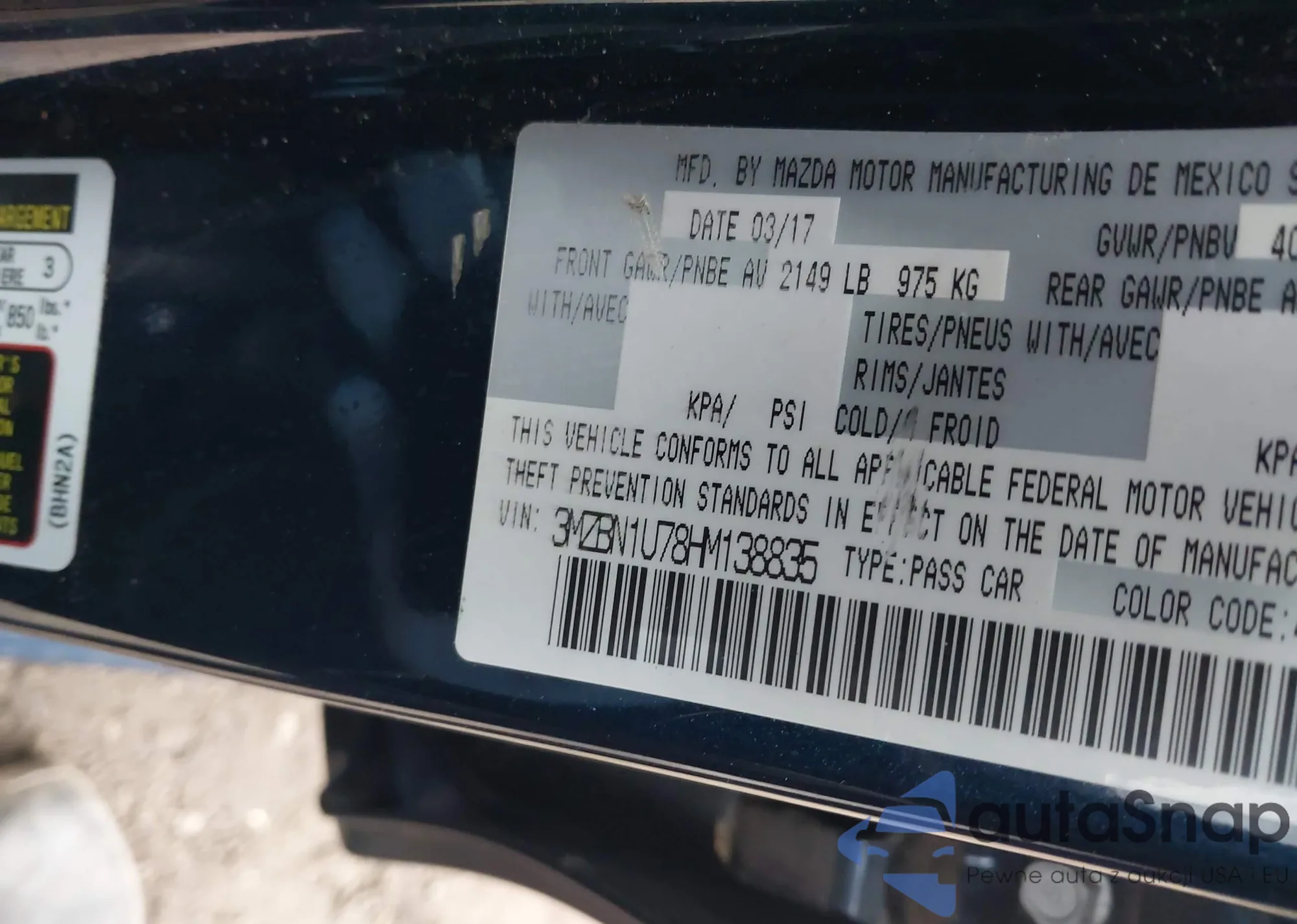 LOT: 44136571 VIN: 3MZBN1U78HM138835